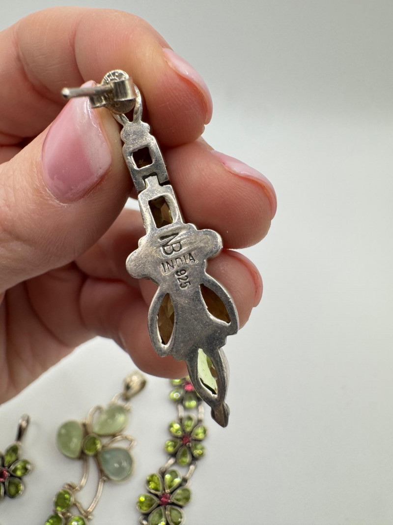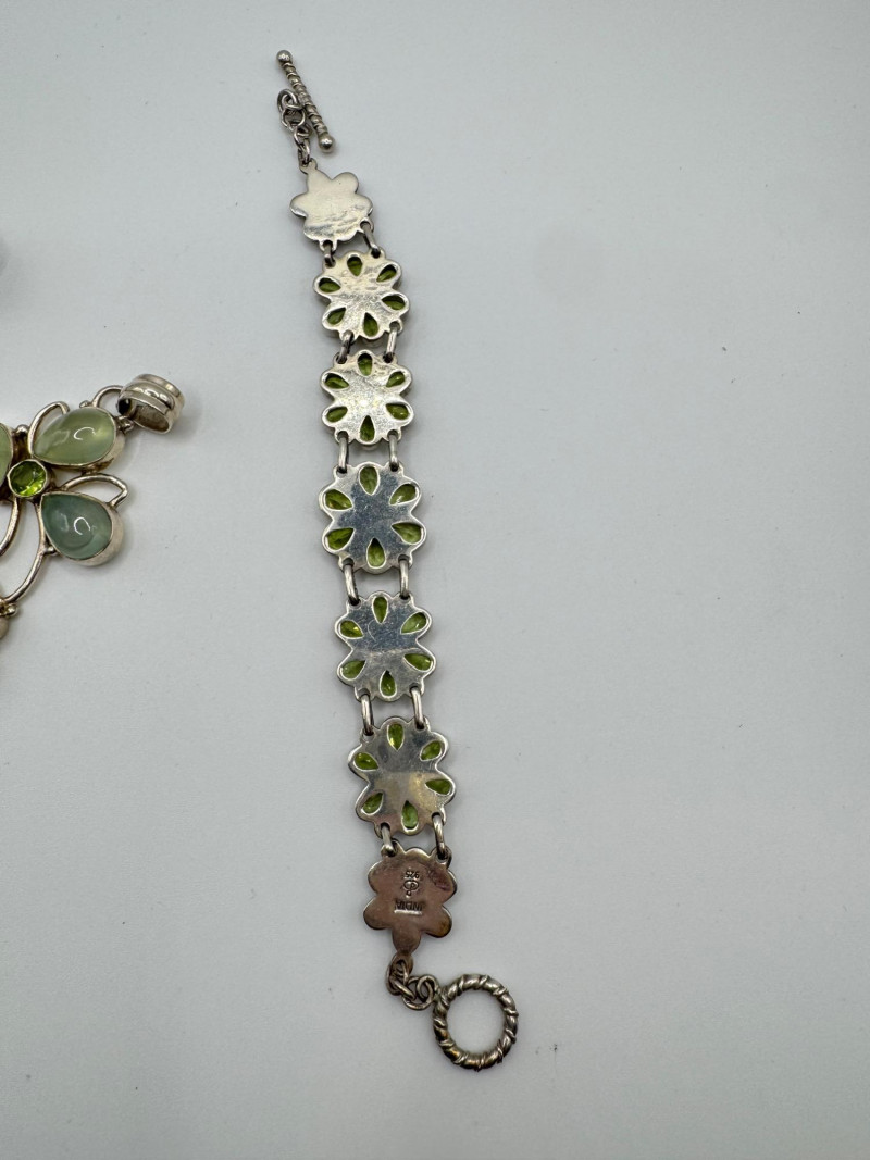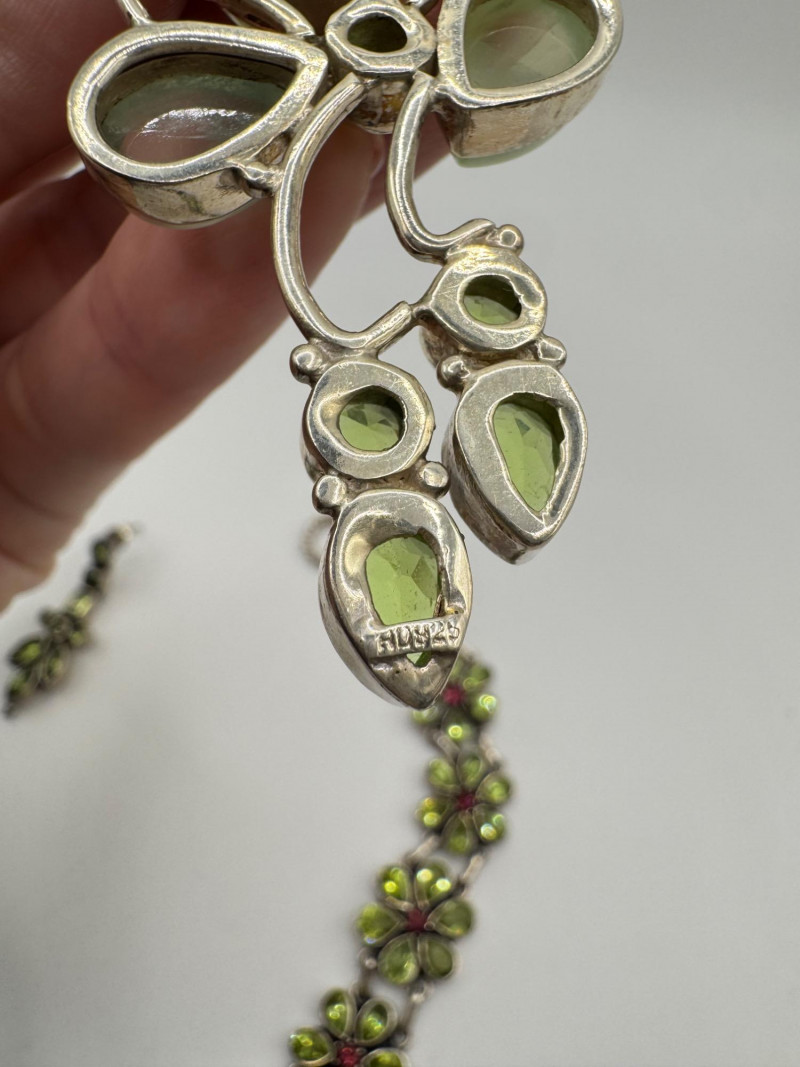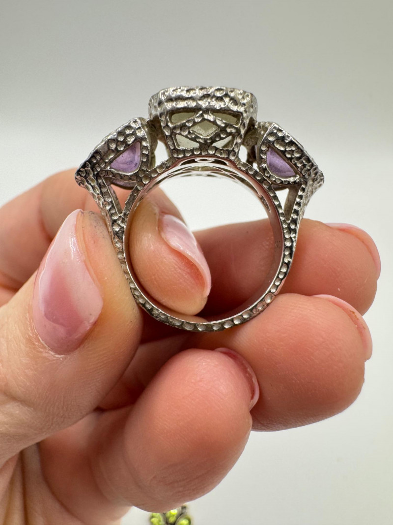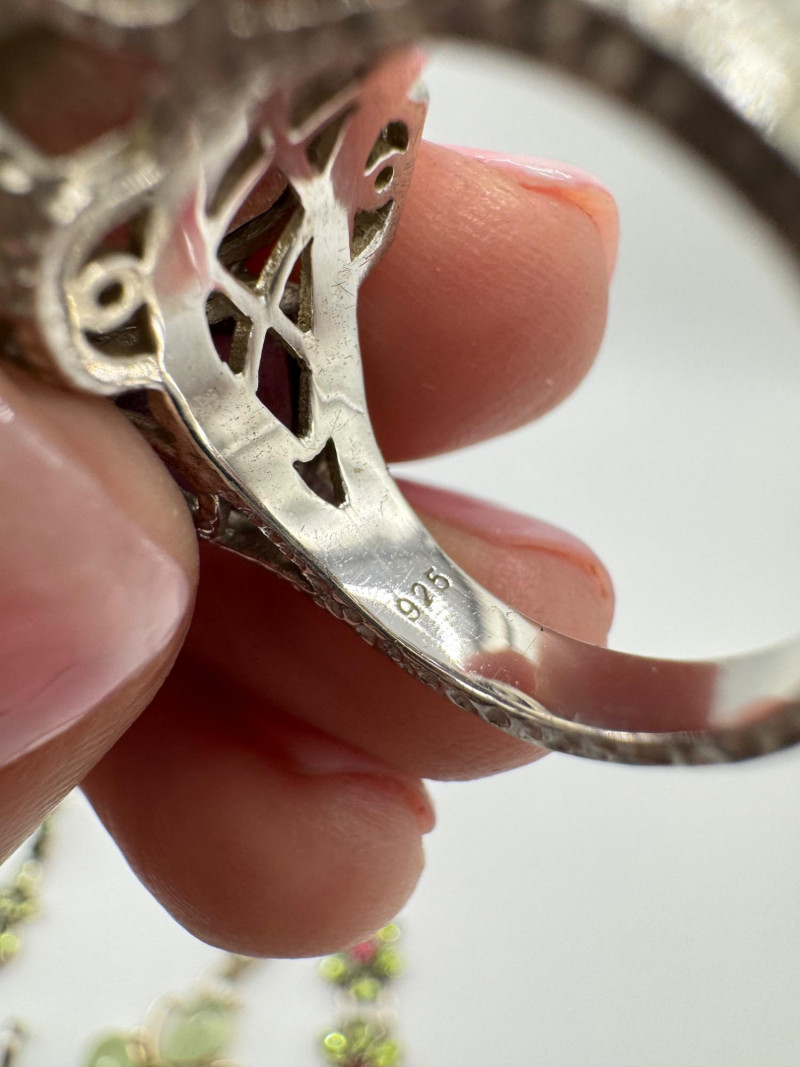 Sterling Jewelry Lot – Green & Purple Stones 62.12g. General Disclaimer:All jewelry in this auction is sold as-is. Metals and gemstones have not been tested unless specified. No guarantees are made regarding metal purity, gemstone authenticity, or origin. No refunds based on identification or quality.