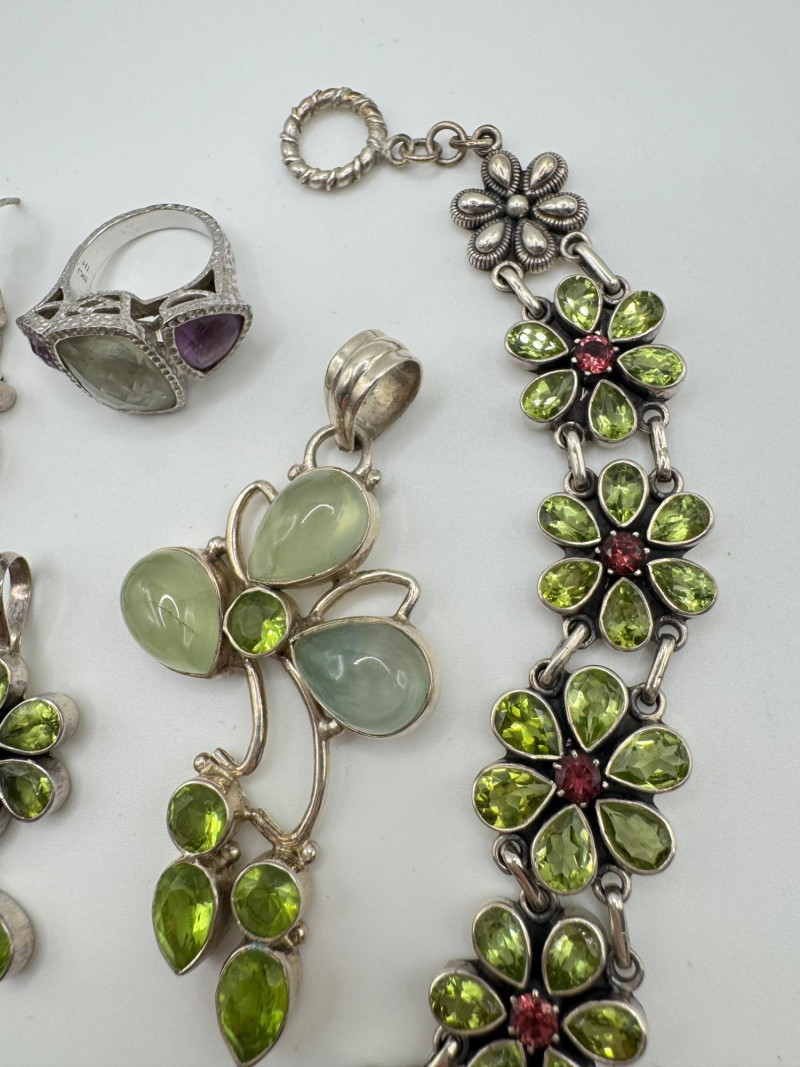 Lot # 124 - Sterling Jewelry Lot – Green & Purple Stones 62.12g