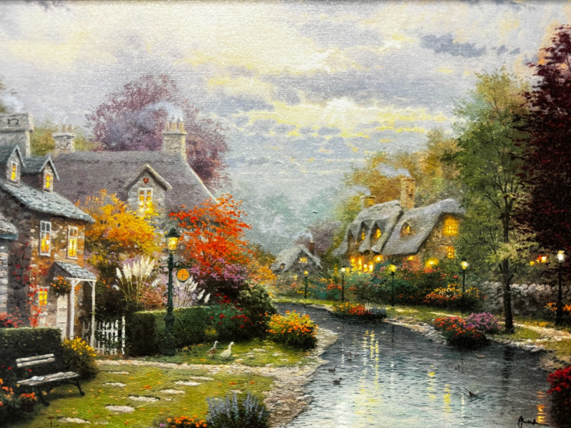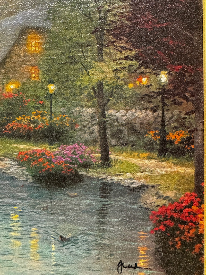 Lot # 130 - Thomas Kinkade “Lamplight Brooke” - Framed Canvas, Signed w/ COA
