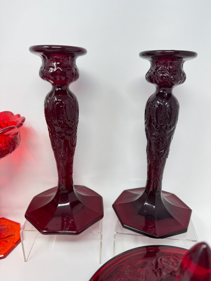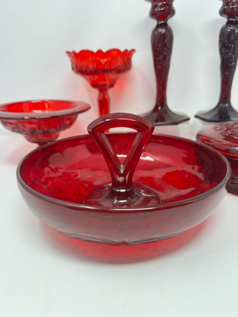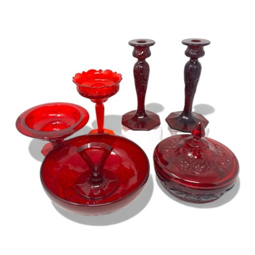 Lot # 141 - Red Rock Crystal Glass Collection McKee Style – 6 Pcs. Est. $400+
