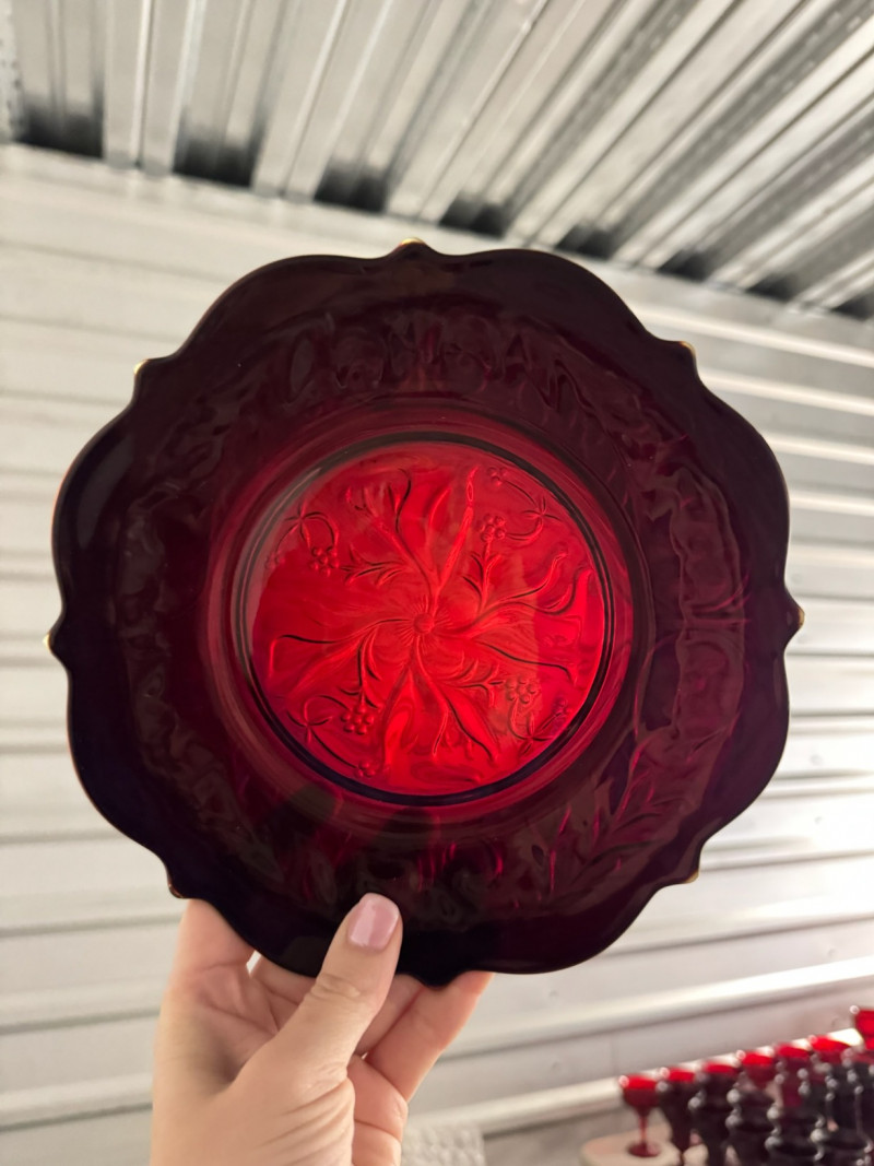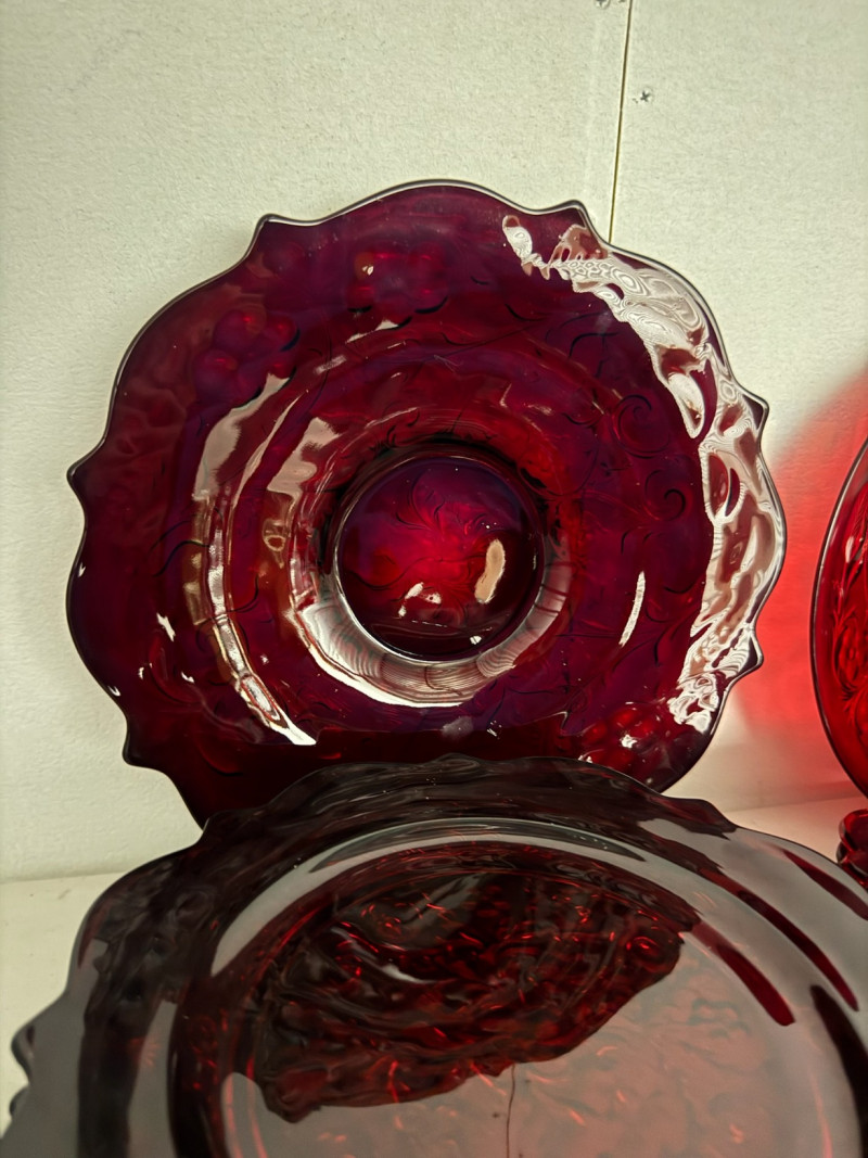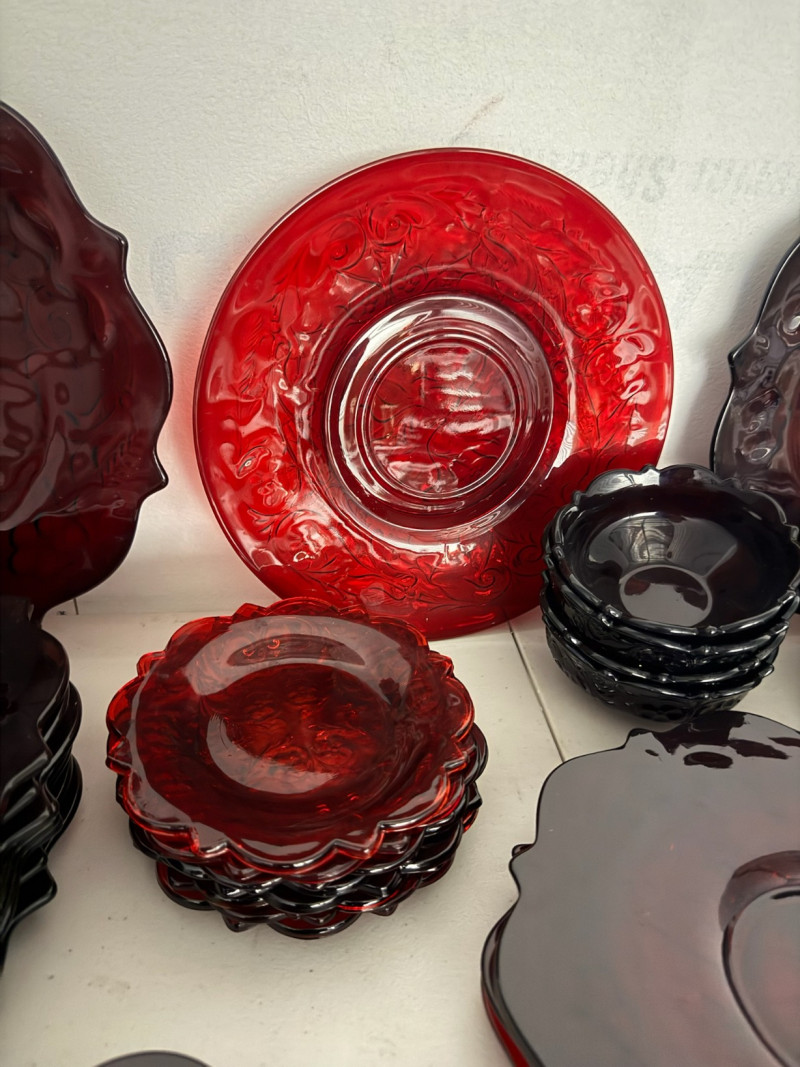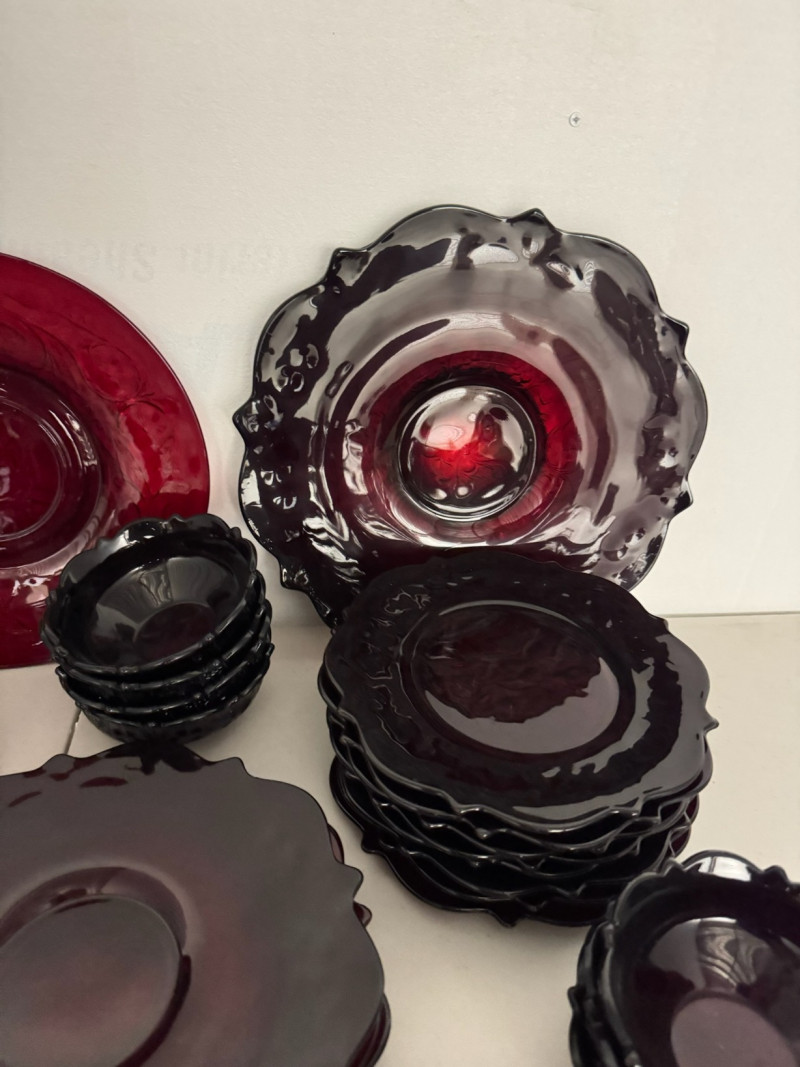 McKee Glass Style Red Rock Ruby Dinnerware – 47 Pc, Est. Value $500+ Large 47-piece red rock crystal dinnerware collection Includes: