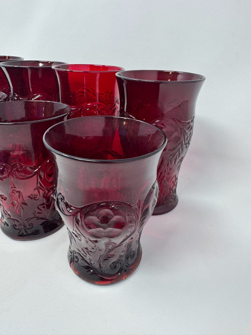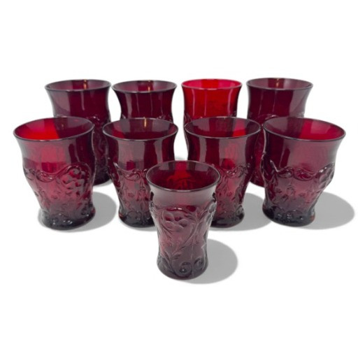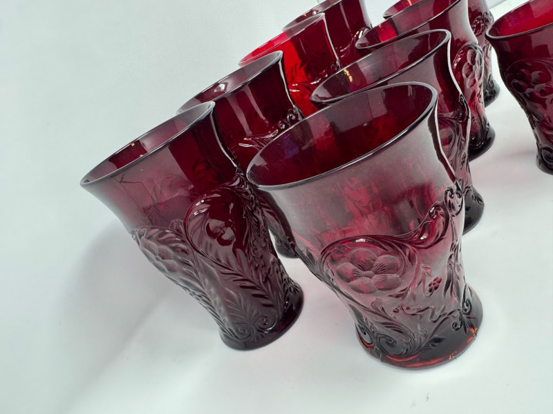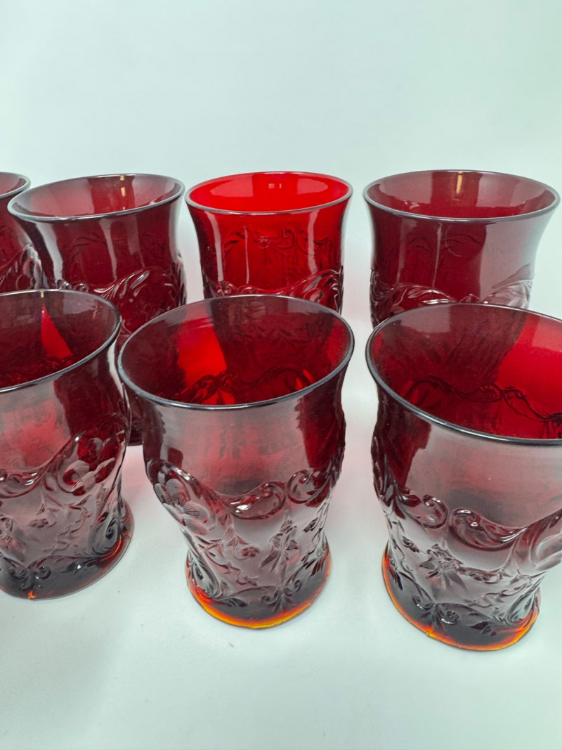 Lot # 152 - Red Rock Crystal Glass Set McKee Style – 9pcs Est. Value $600+