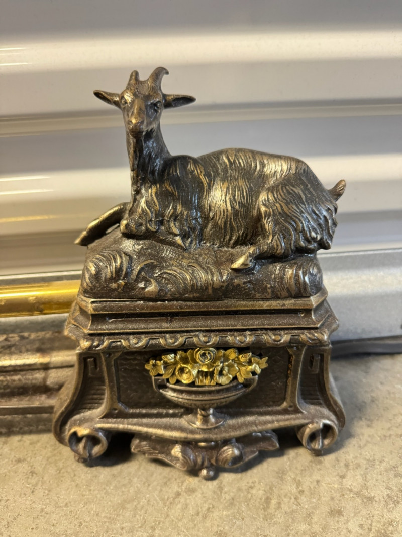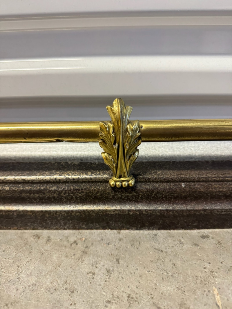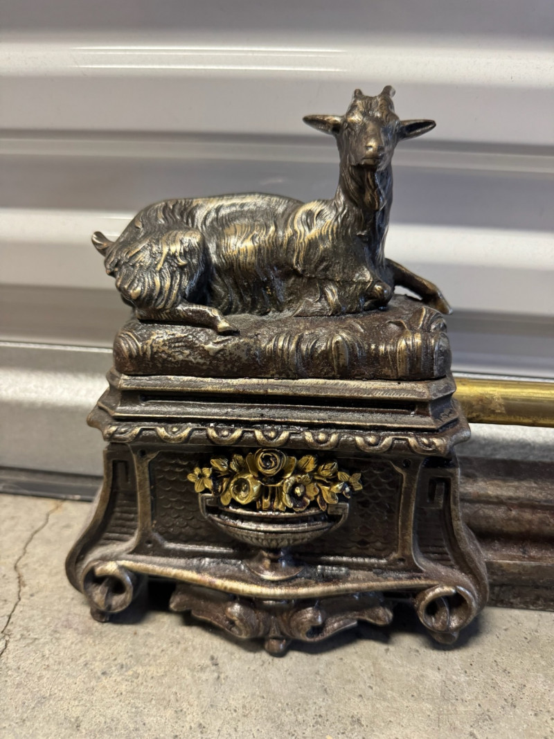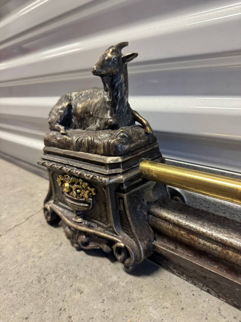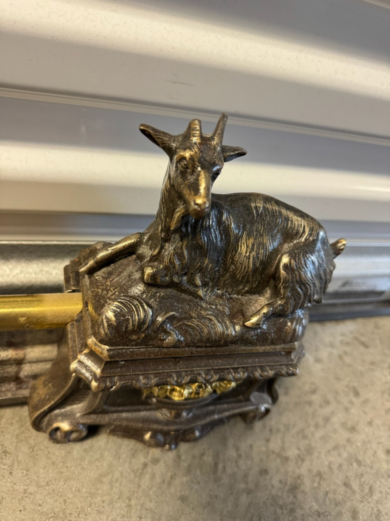 Long Brass Fireplace Fender – Ornate Goats, Vintage Hearth Decor.