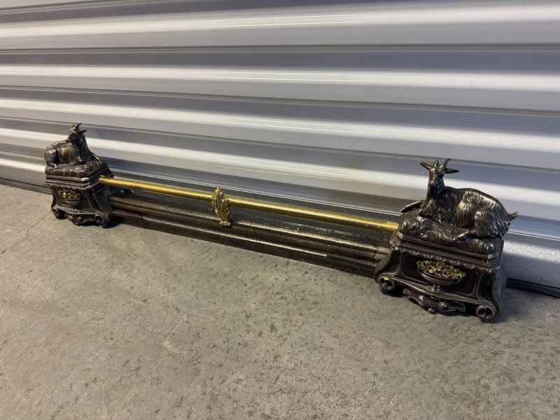 Lot # 163 - Long Brass Fireplace Fender – Ornate Goats, Vintage Hearth Decor