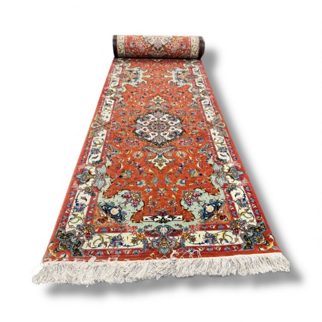 Hand-Knotted Runner Rug – Persian Style, Floral Motif.
