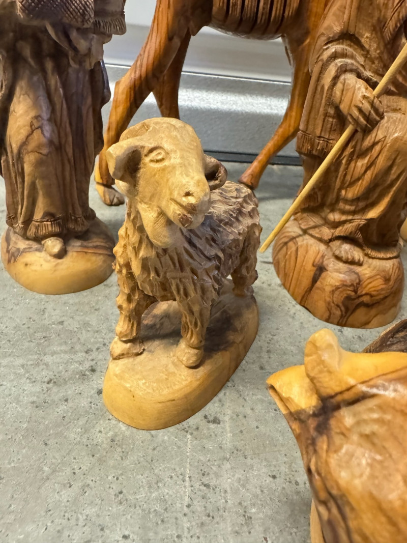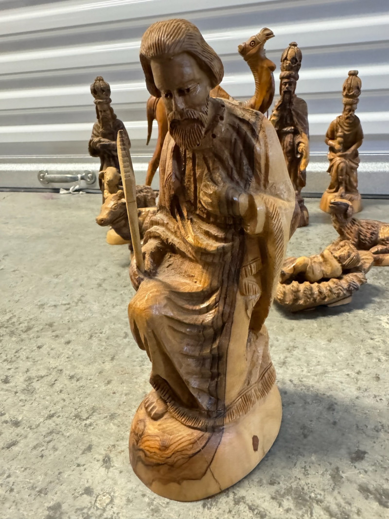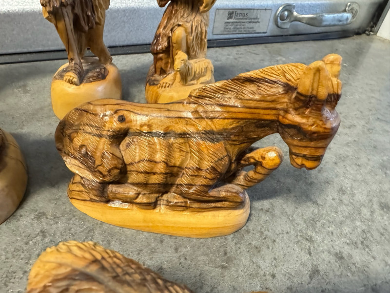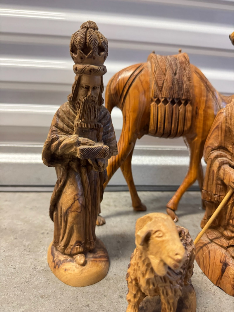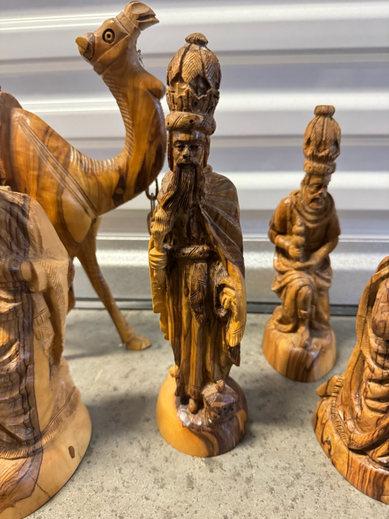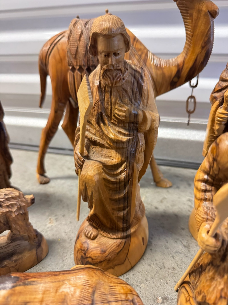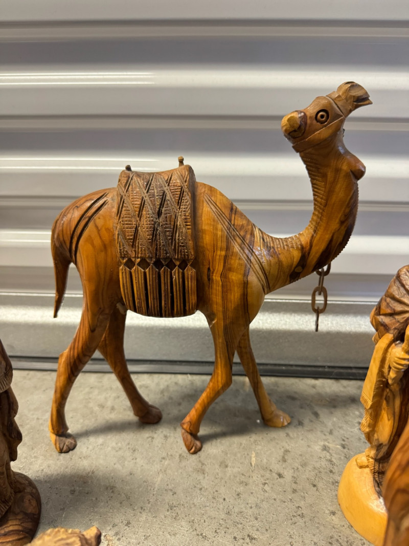 Lot # 171 - Hand-Carved Olive Wood Nativity Set – Large Figures + Camel