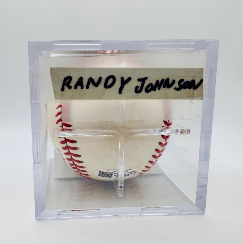 Lot # 1 - Randy Johnson Signed Baseball w/ JSA COA & Display Case