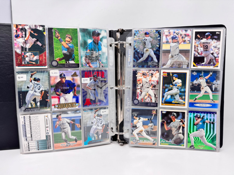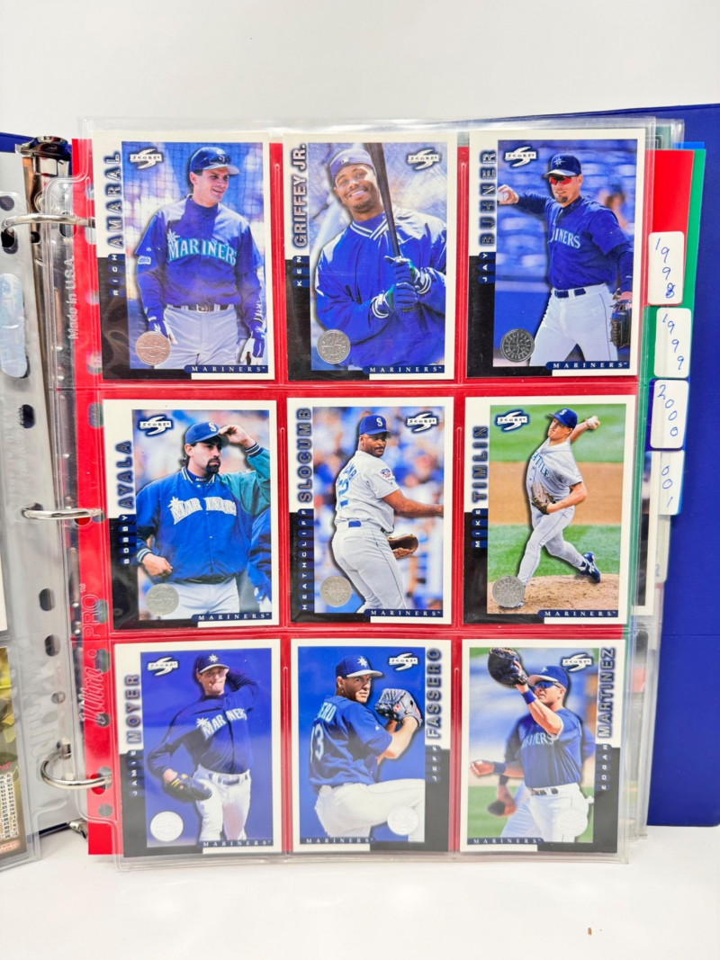 Large Baseball Card Binder Lot 1987–2008 + Griffey & More. Two large binders dedicated to 1987–2006 cards (sorted by year tabs) Additional binder pages with 2007–2008 cards Premium player binder featuring stars such as: Ken Griffey Jr. Ken Griffey Sr. Randy Johnson Alex Rodriguez Chris Bosio Other notable MLB players Mix of Topps, Upper Deck, Score, Donruss, Fleer, Pacific, and more.