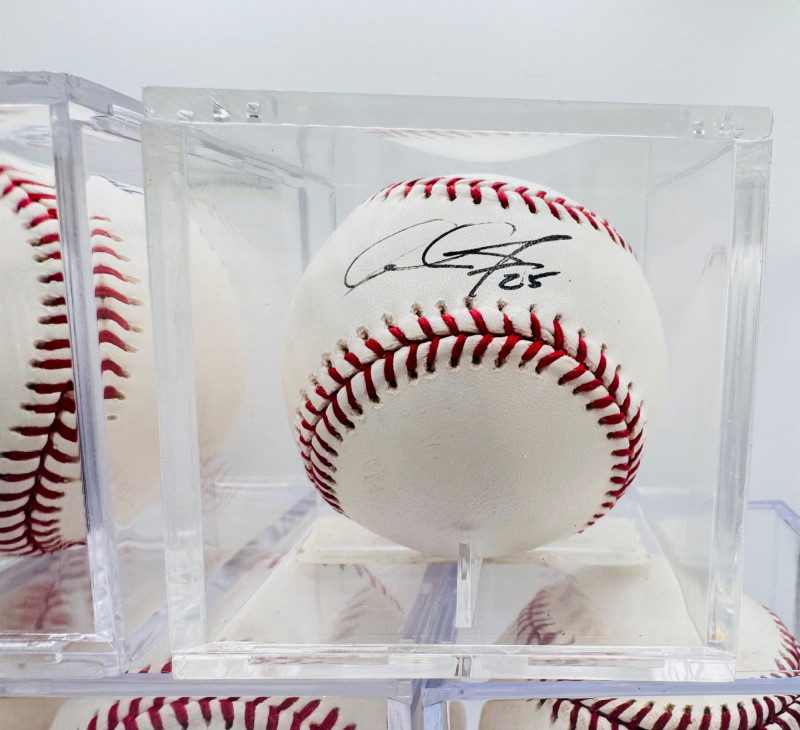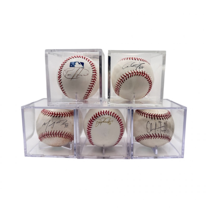 Signed Baseball Lot – Hernandez, Jones, Jacobs, Jacobsen, Furbush. Includes 5 signed baseballs (all in display cases): Disclaimer: The signature on this item has not undergone professional or third-party authentication. While it appears to be hand-signed and was represented as genuine by the original owner, no independent verification has been performed.