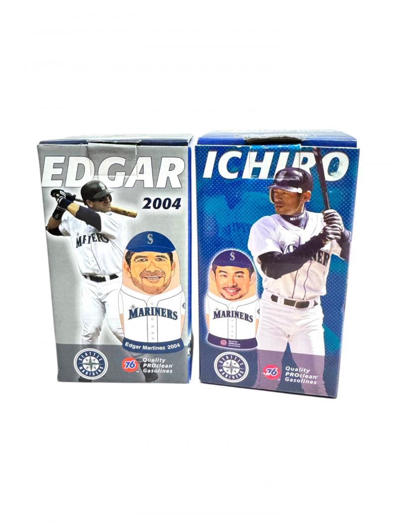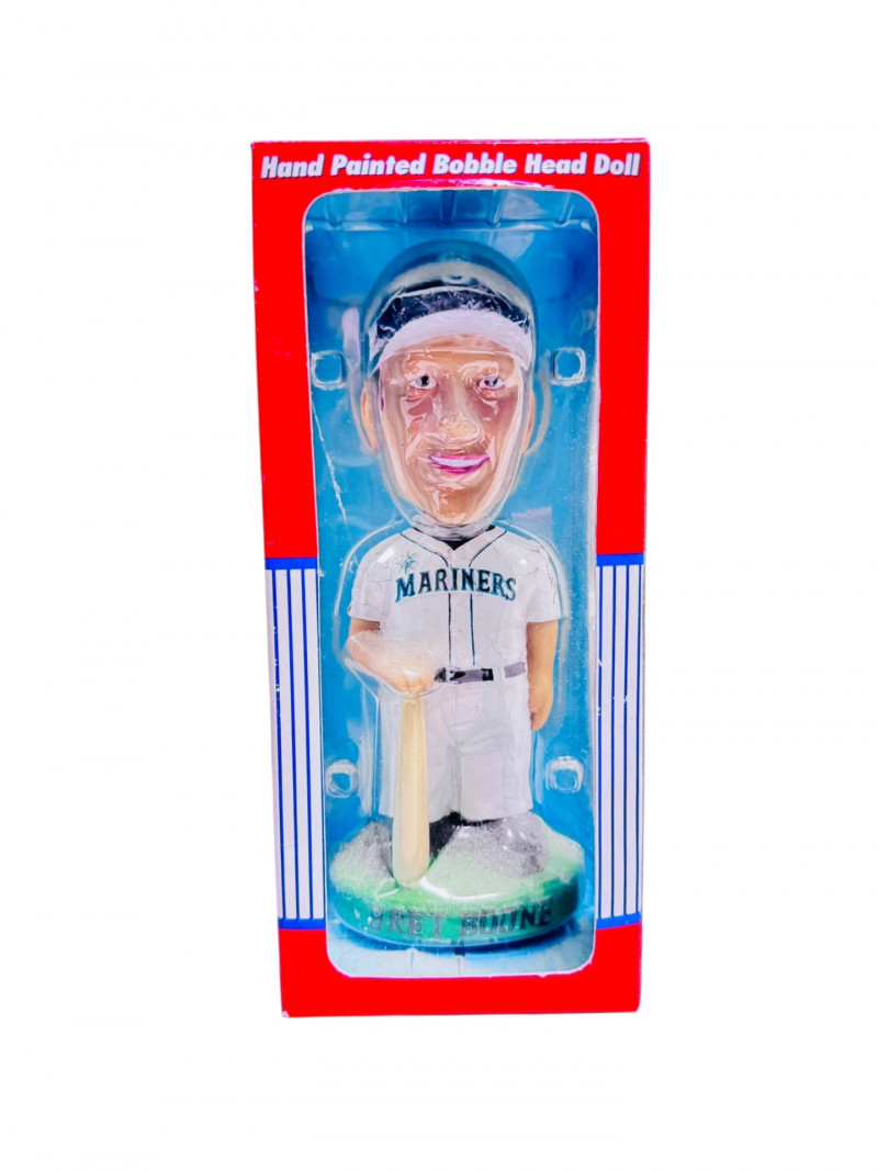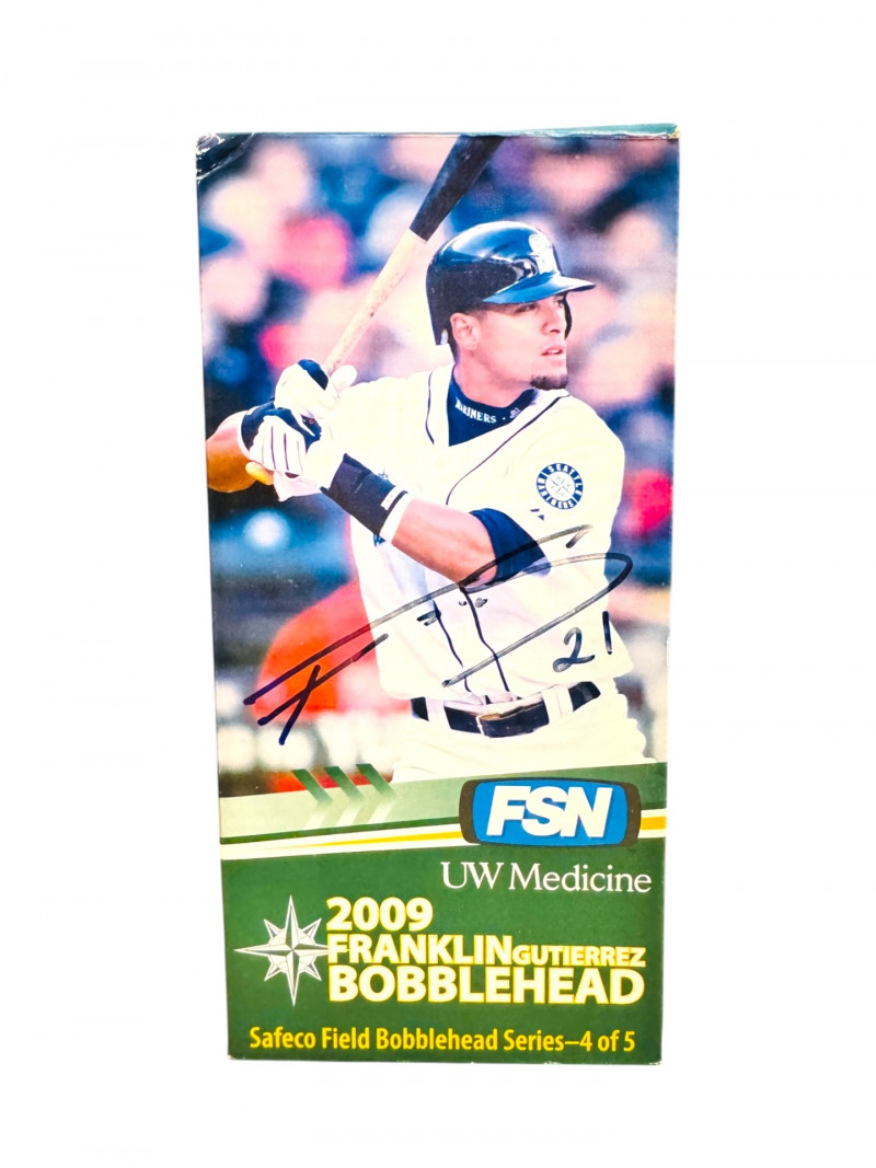 Mariners Bobblehead Lot w/ Nesting Dolls & Signed Gutierrez Box. Disclaimer: The autograph on the Franklin Gutierrez box has not undergone professional or third-party authentication. While it appears hand-signed and was represented as genuine by the original owner, no independent verification has been performed.