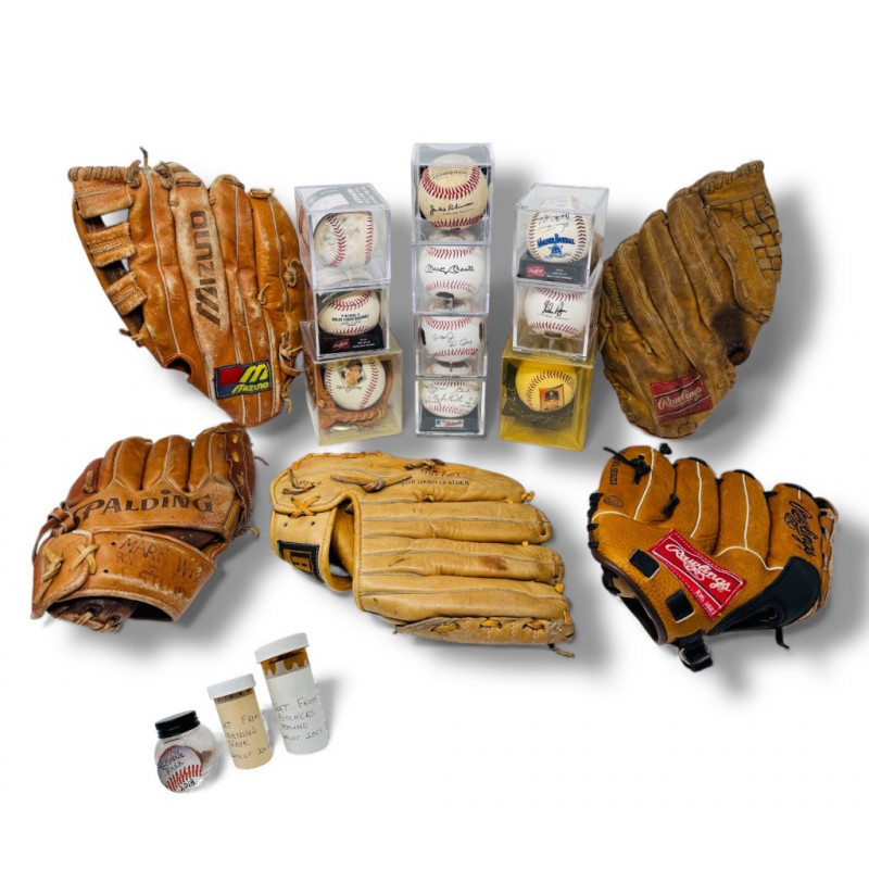 Lot # 20 - Baseball Memorabilia Lot – Gloves, Safeco/T-Mobile Field Dirt, & Balls