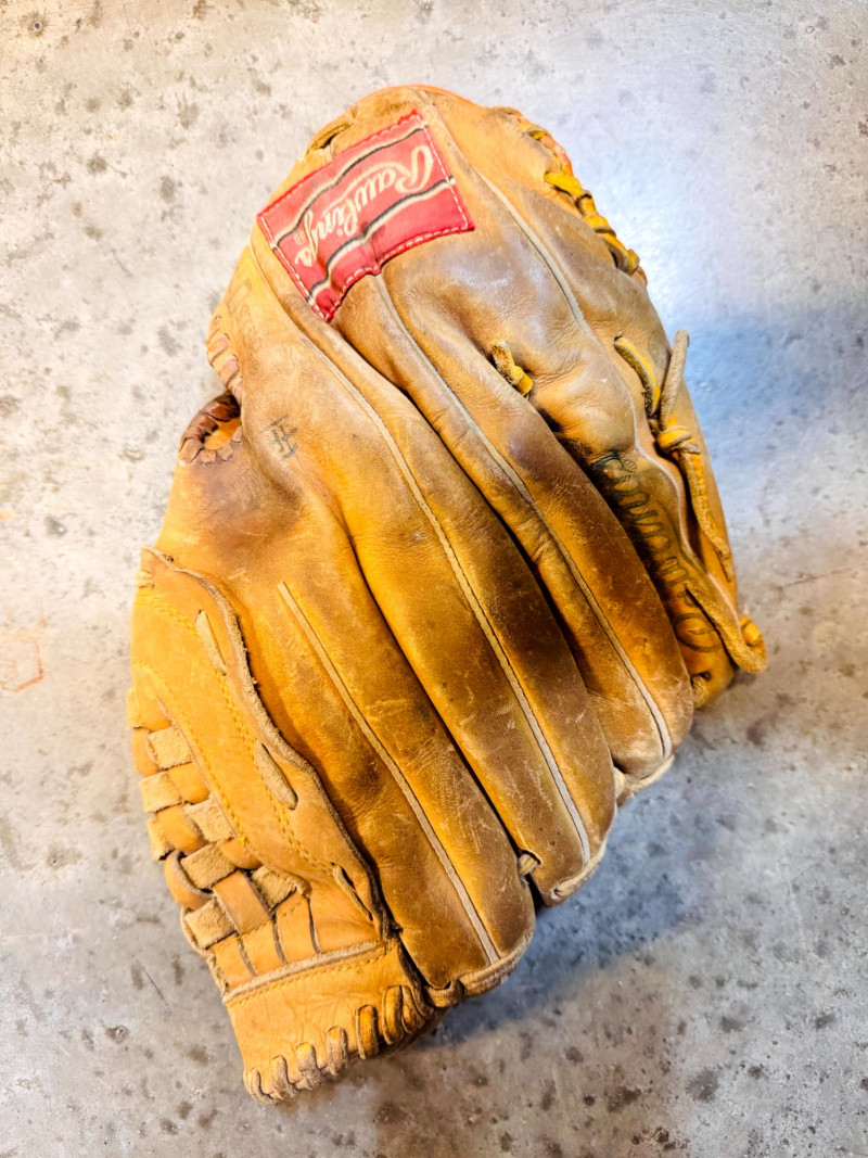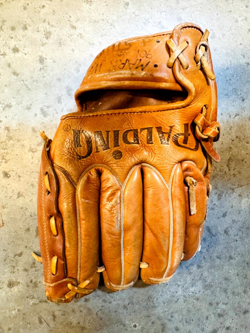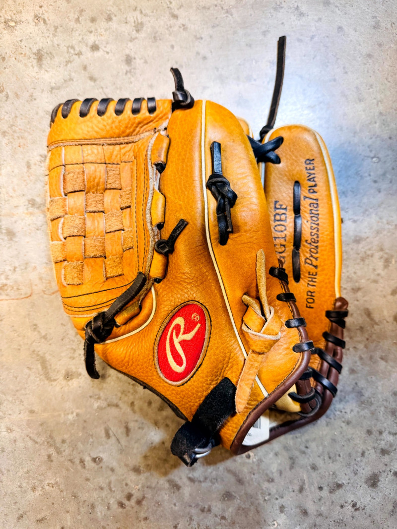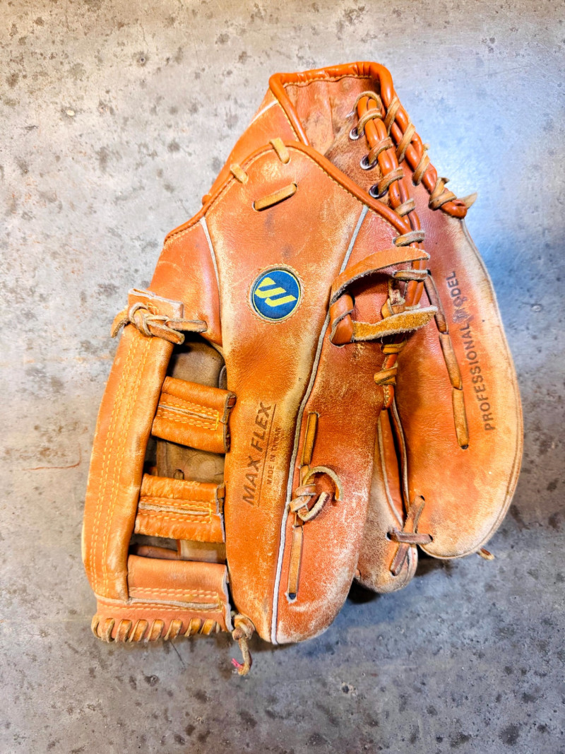 • Gloves (various brands): Mizuno, Spalding, Rawlings, and others – mixed wear and ages.