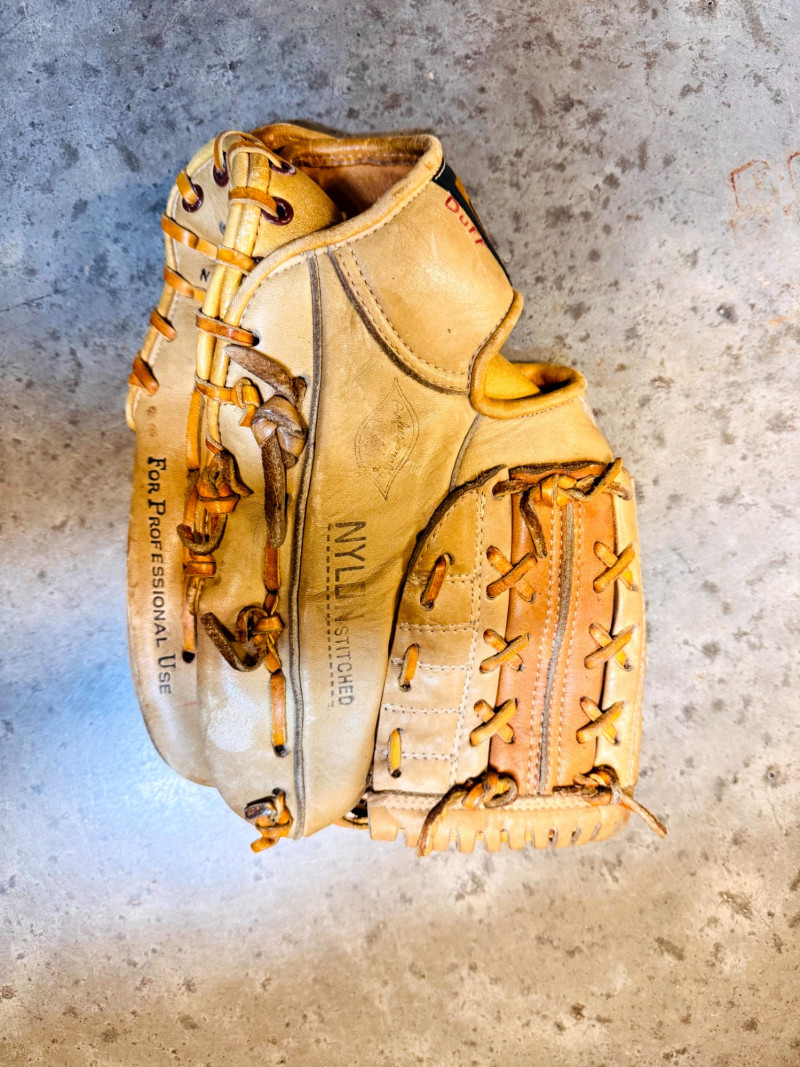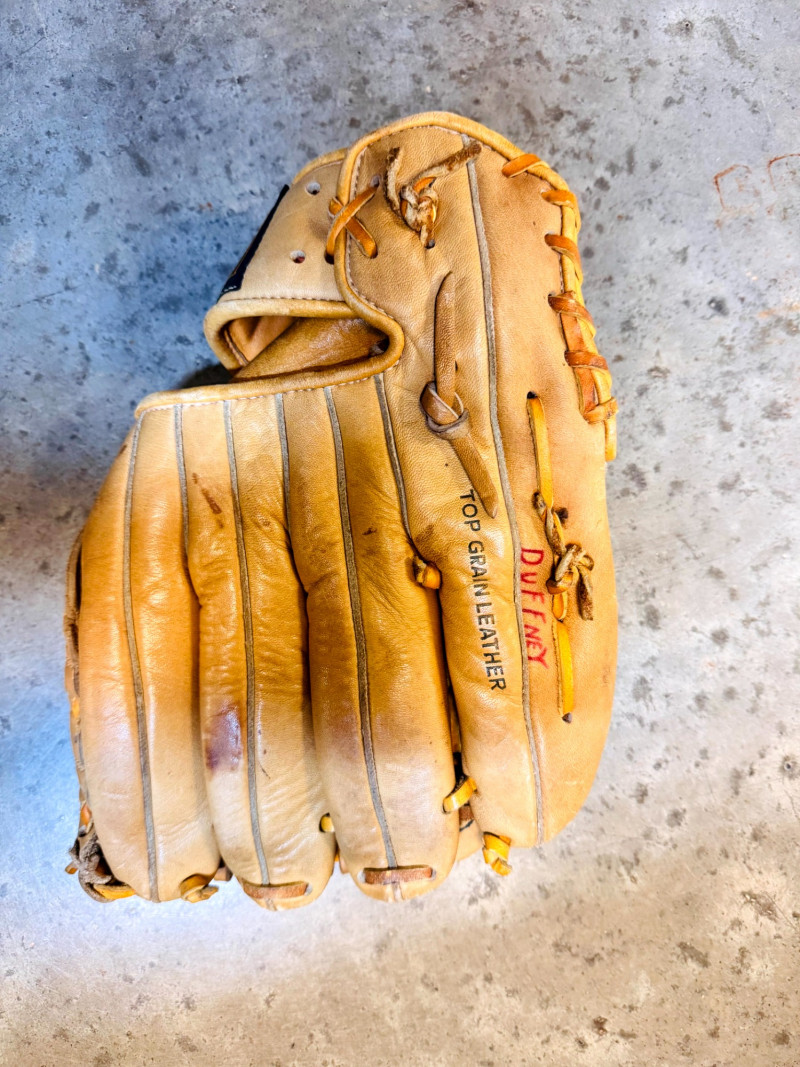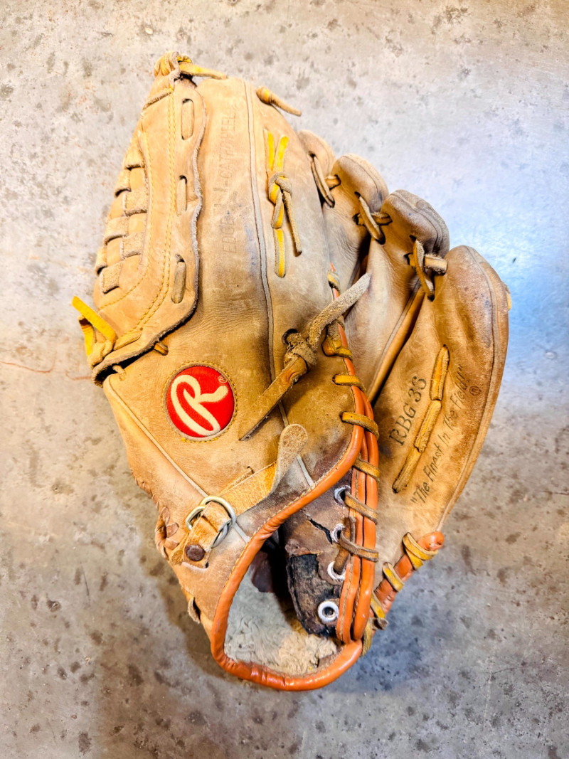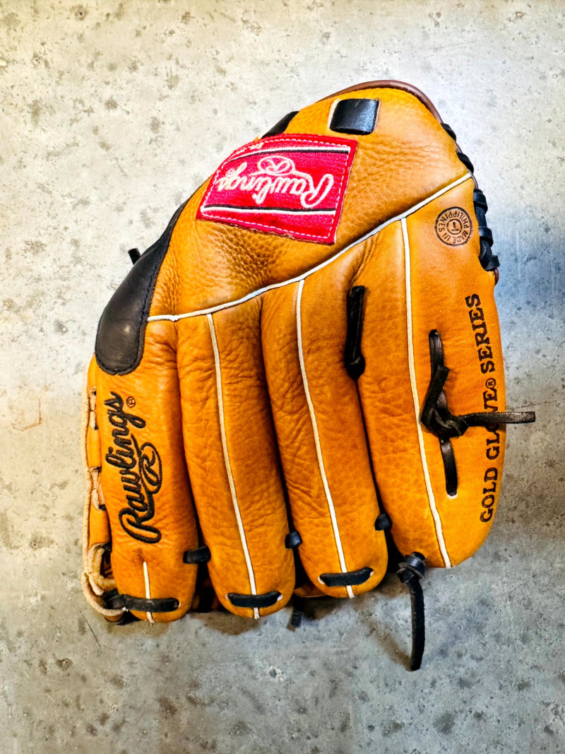 • Gloves (various brands): Mizuno, Spalding, Rawlings, and others – mixed wear and ages.