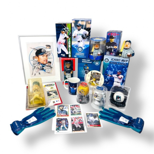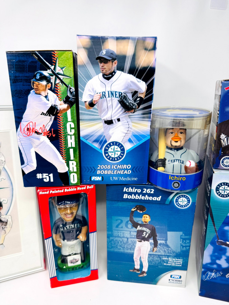 Lot # 24 - Ichiro Suzuki Collectible Lot – Bobbleheads, Signed Items, Cards +