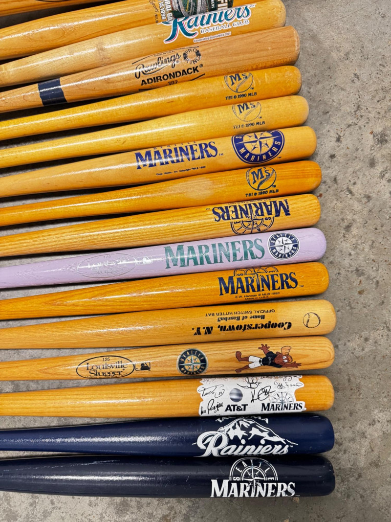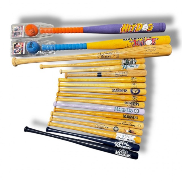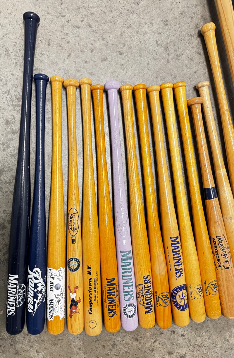 Lot of Mariners Bats – Mini & Full Size w/ Stamped Signatures.