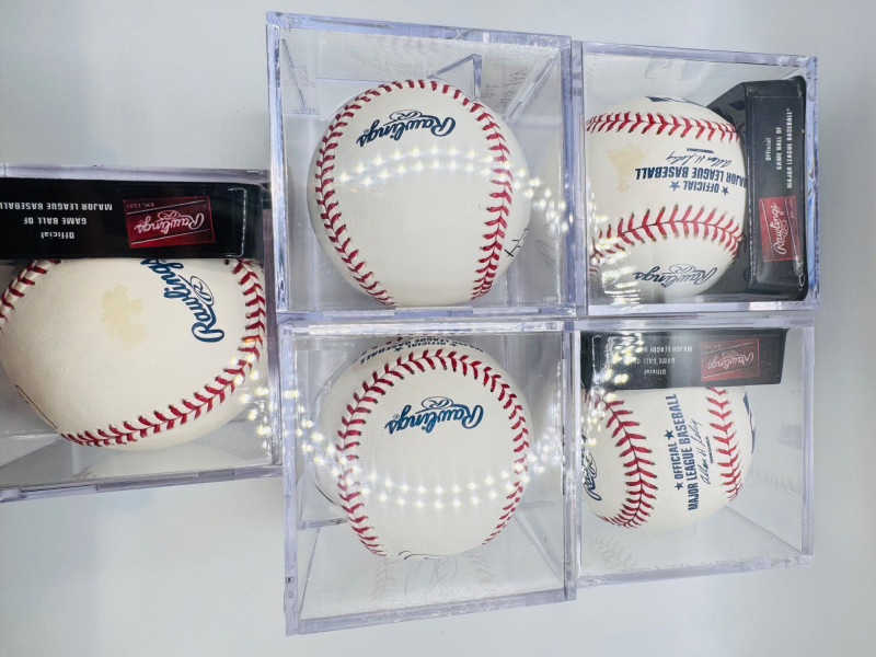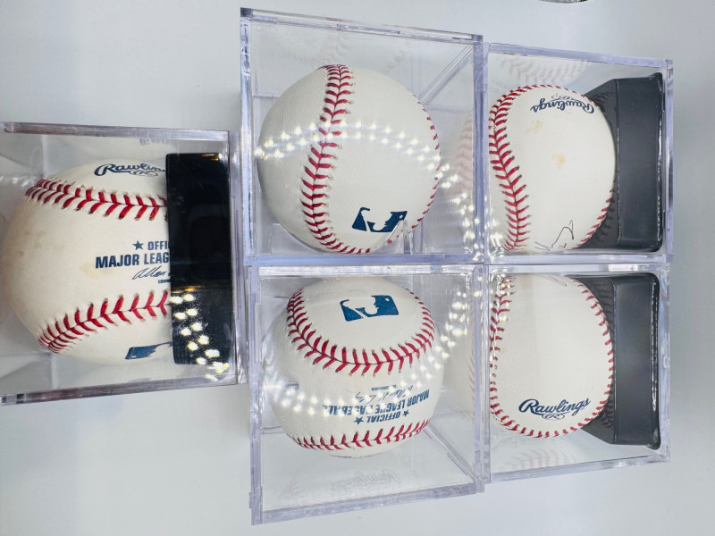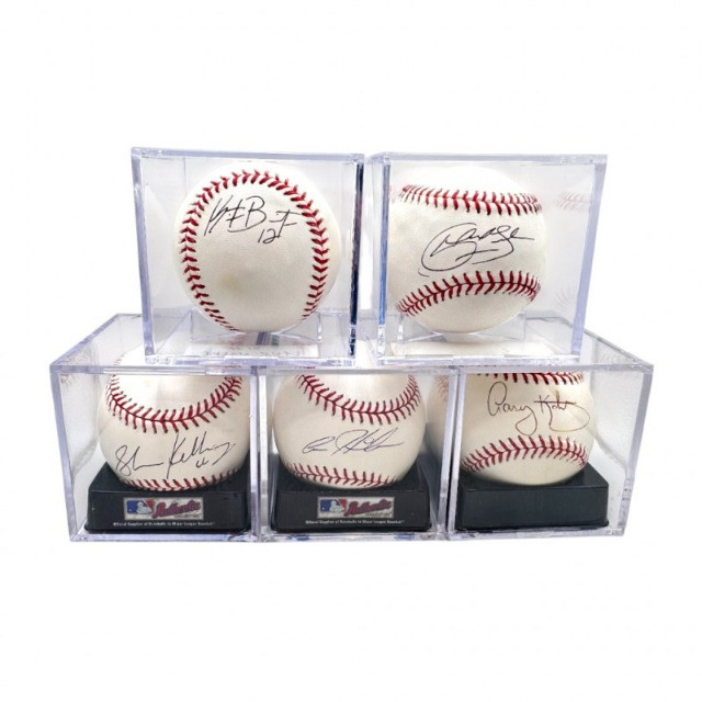 5 Signed Baseballs – Franklin, Bay, Kelly, Heilman, Kotchman. Group of five signed baseballs, each in a display cube. Signatures include: