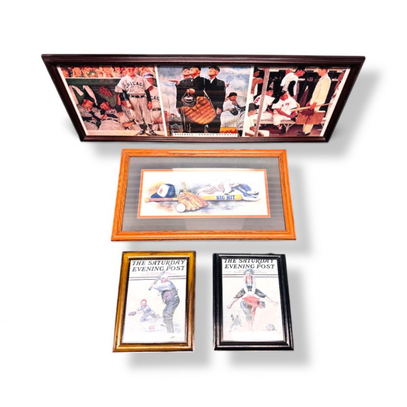 Lot # 36 - Framed Baseball Art & Covers incl. Norman Rockwell , 4 pcs