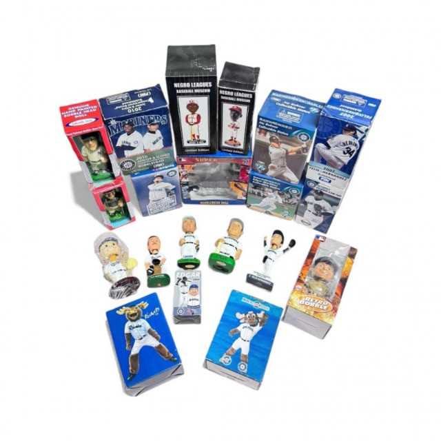 Lot # 37 - Large Bobblehead Lot w/ Mariners, Negro League, Nesting Doll +