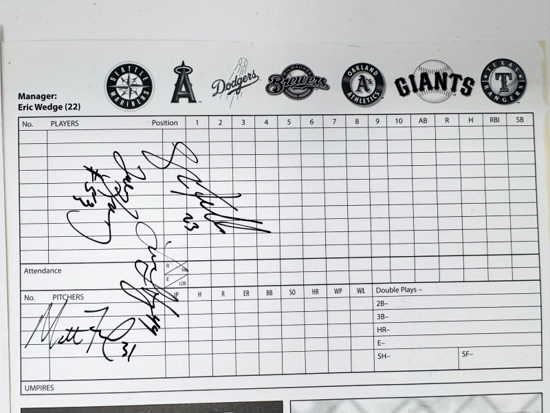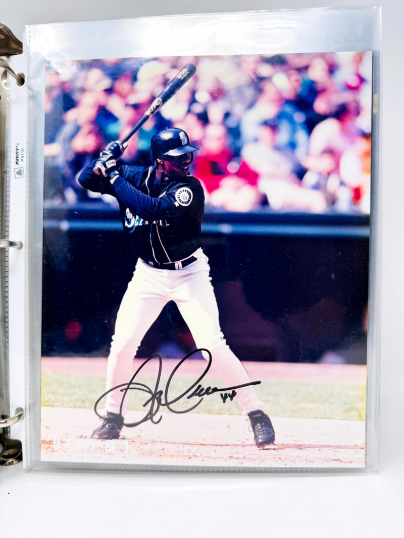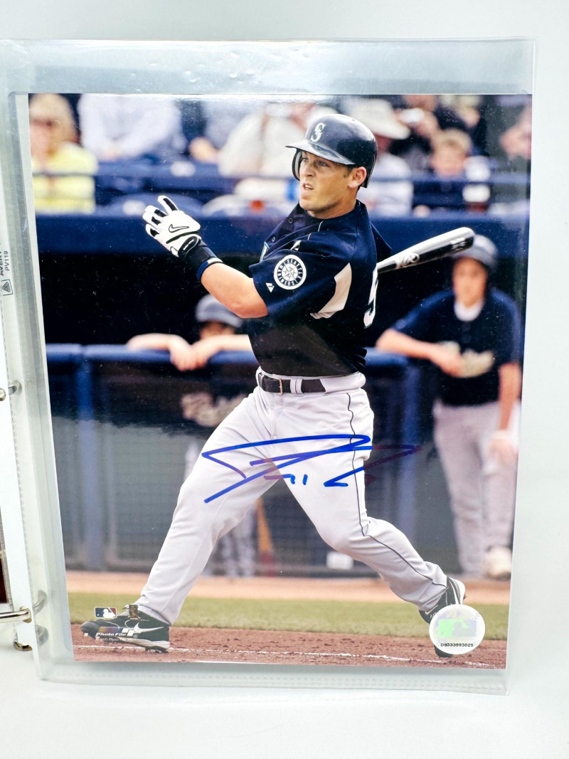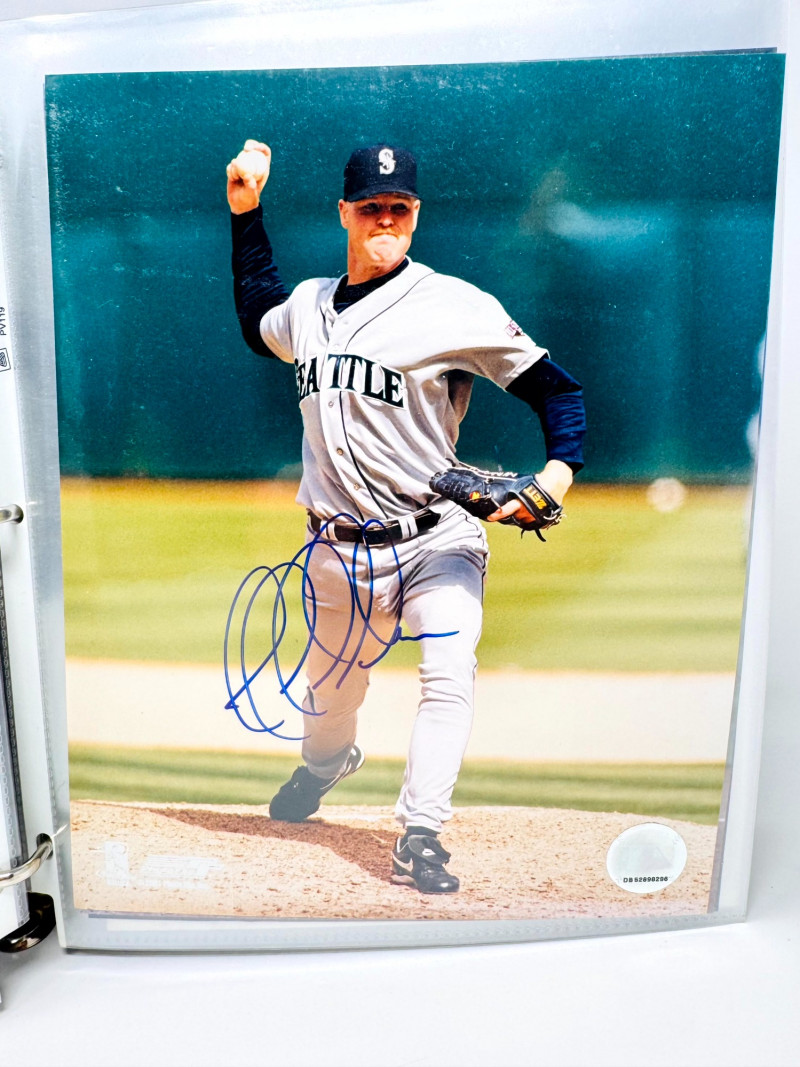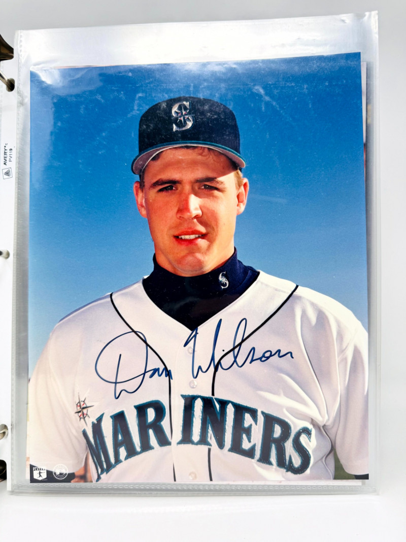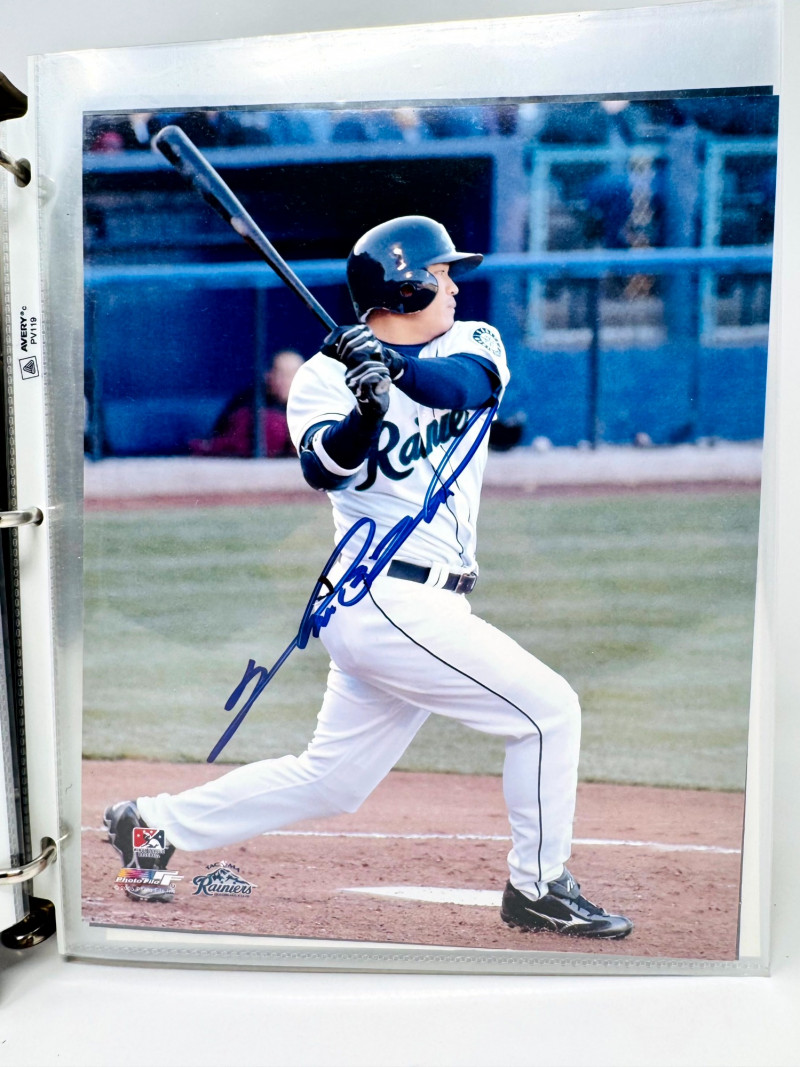 Signed Baseball Photo & Ephemera Lot – Feller, Rose, Larsen & More. Includes autographs from Bob Feller, Pete Rose, Don Larsen, Kyle Kendrick, Jay Buhner, Bobby Madritsch, and others