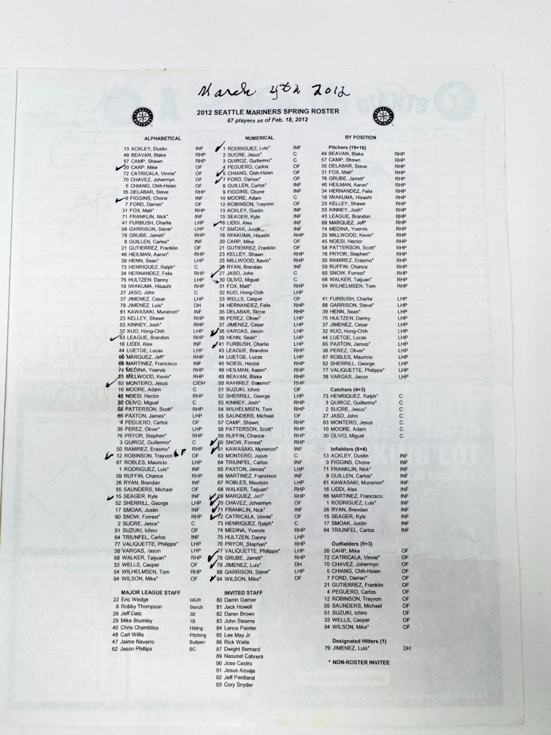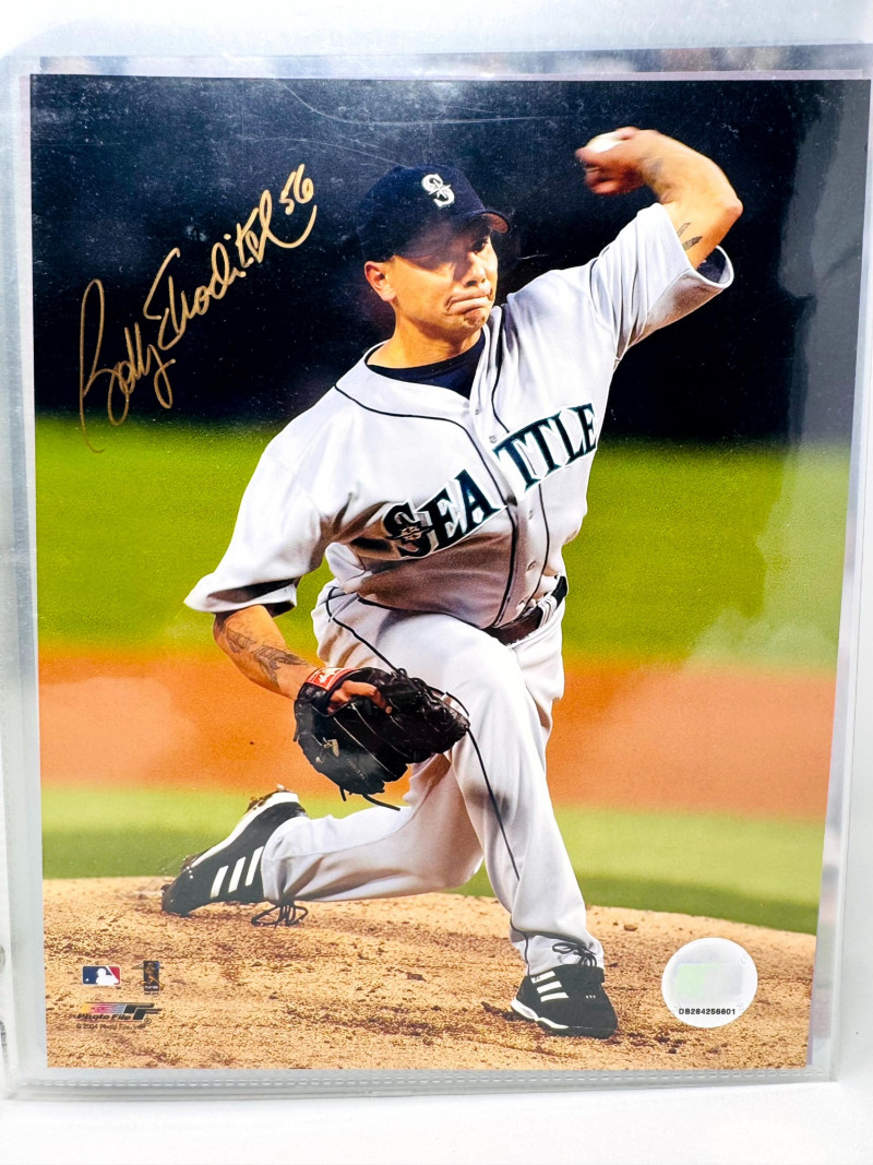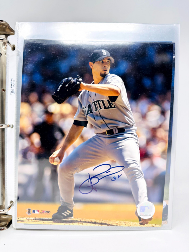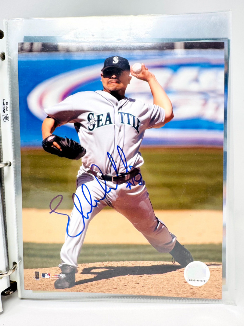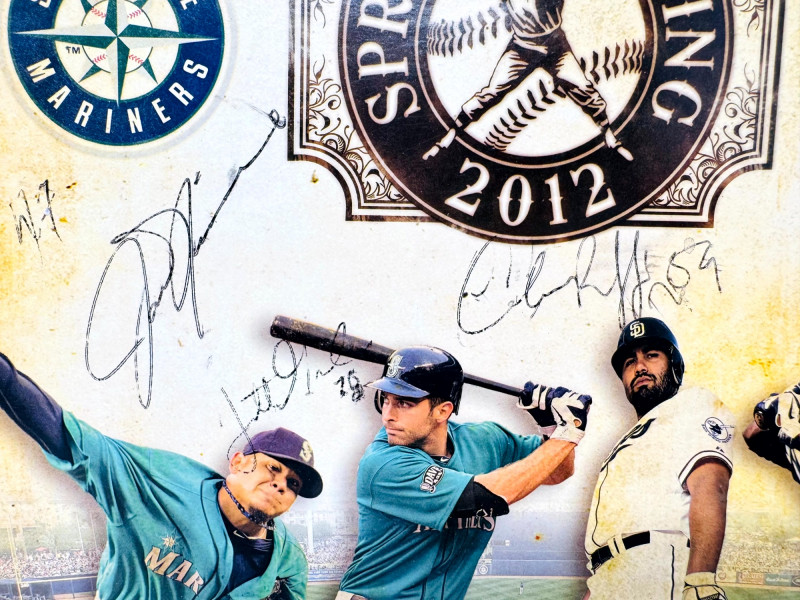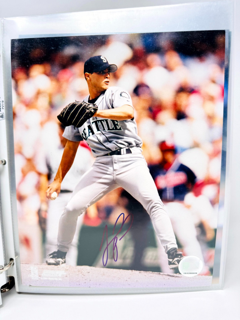 Signed Baseball Photo & Ephemera Lot – Feller, Rose, Larsen & More. Includes autographs from Bob Feller, Pete Rose, Don Larsen, Kyle Kendrick, Jay Buhner, Bobby Madritsch, and others