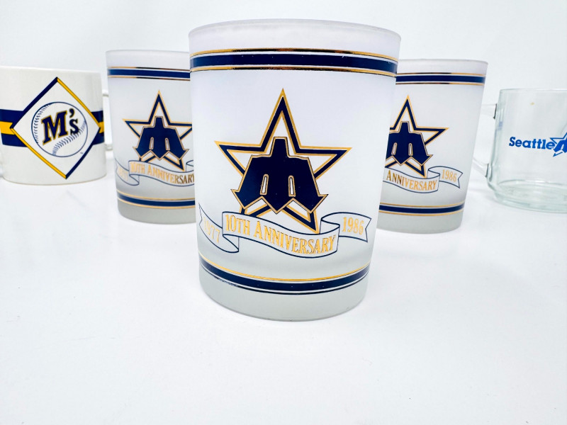 Seattle Mariners Vintage Drinkware Lot – 8 Mugs & Glasses. – (3) Seattle Mariners 10th Anniversary frosted glasses
