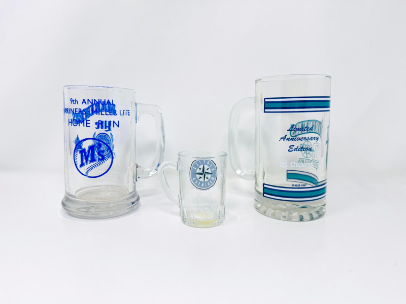 Lot # 61 - Seattle Mariners Beer Glasses & Budweiser Commemorative Bottles