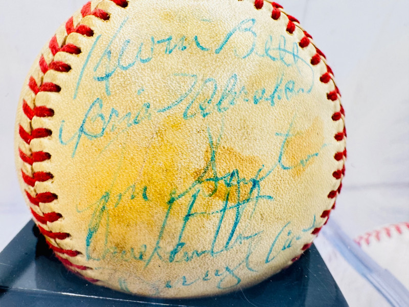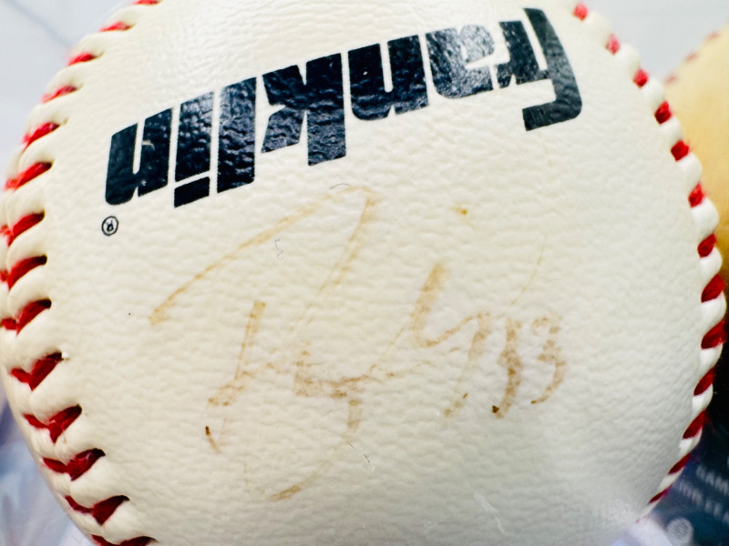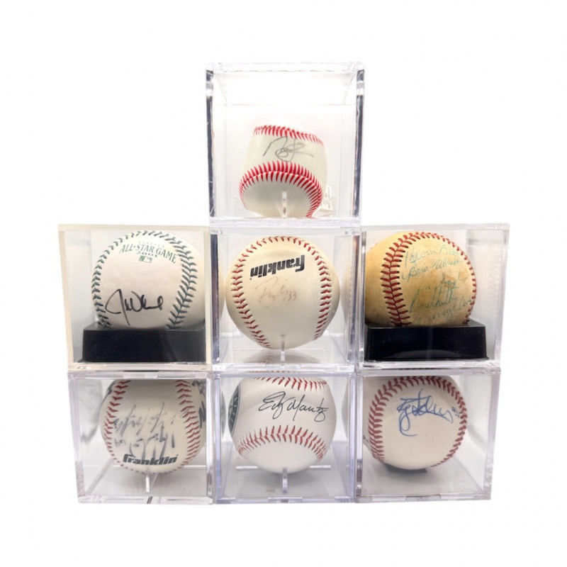 Lot of 6 Signed Baseballs + signed Plush Baseball – Assorted MLB Players. All balls come in display cases. Disclaimer: The signature on this item has not undergone professional or third-party authentication. While it appears to be hand-signed and was represented as genuine by the original owner, no independent verification has been performed.