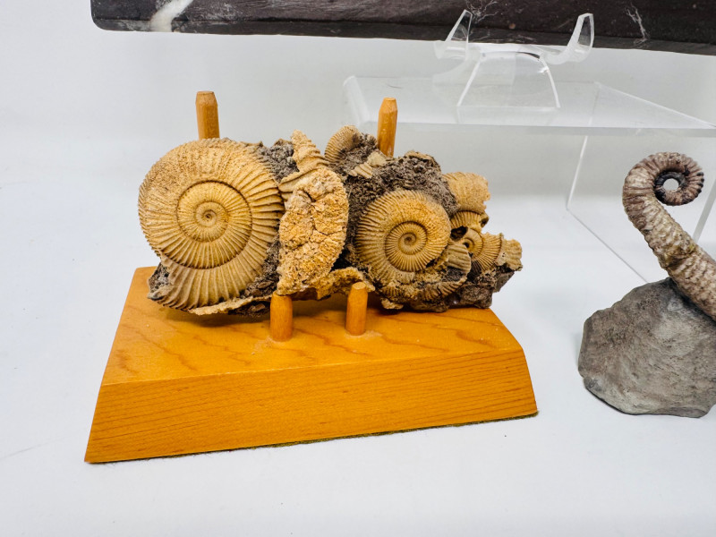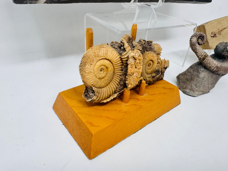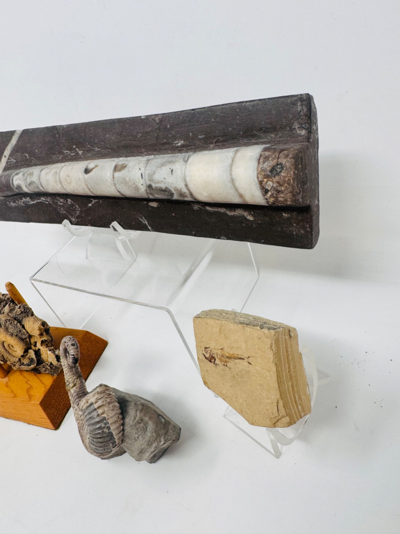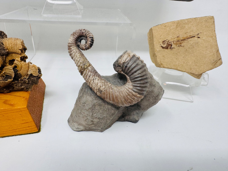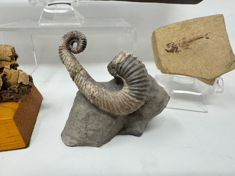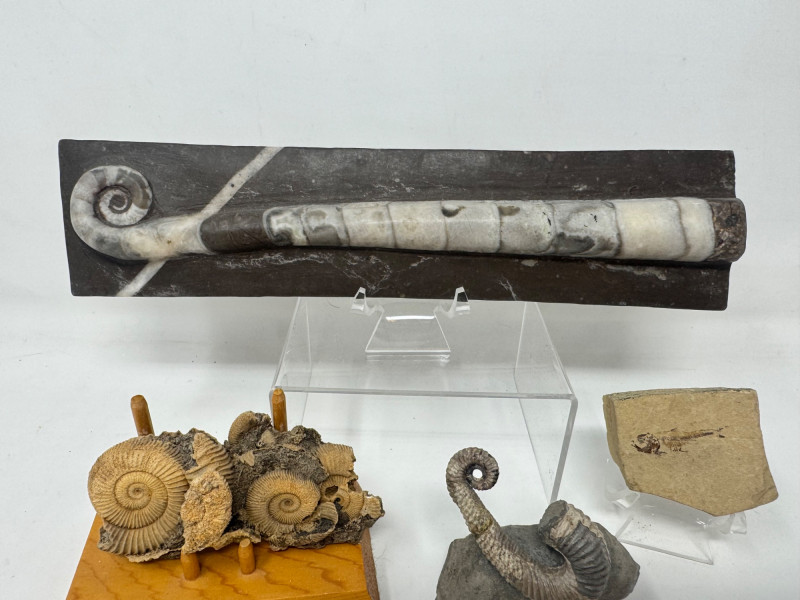 Lot # 5 - Mixed Fossil Lot – Ammonites, Orthoceras, Curled Ammonite & Small Fish
