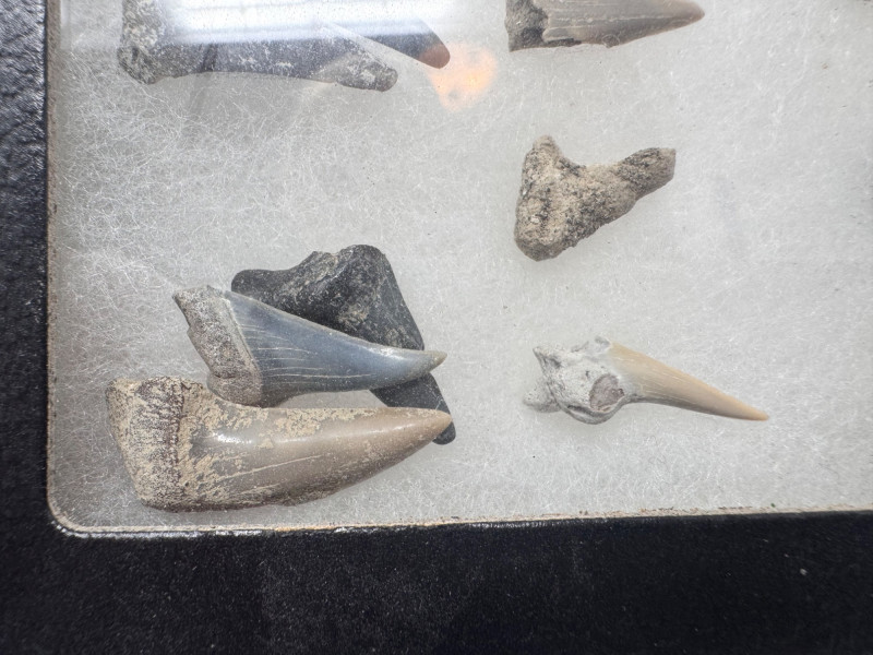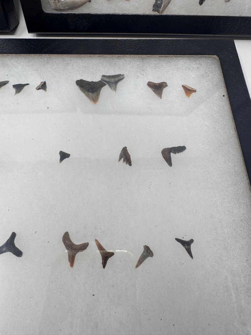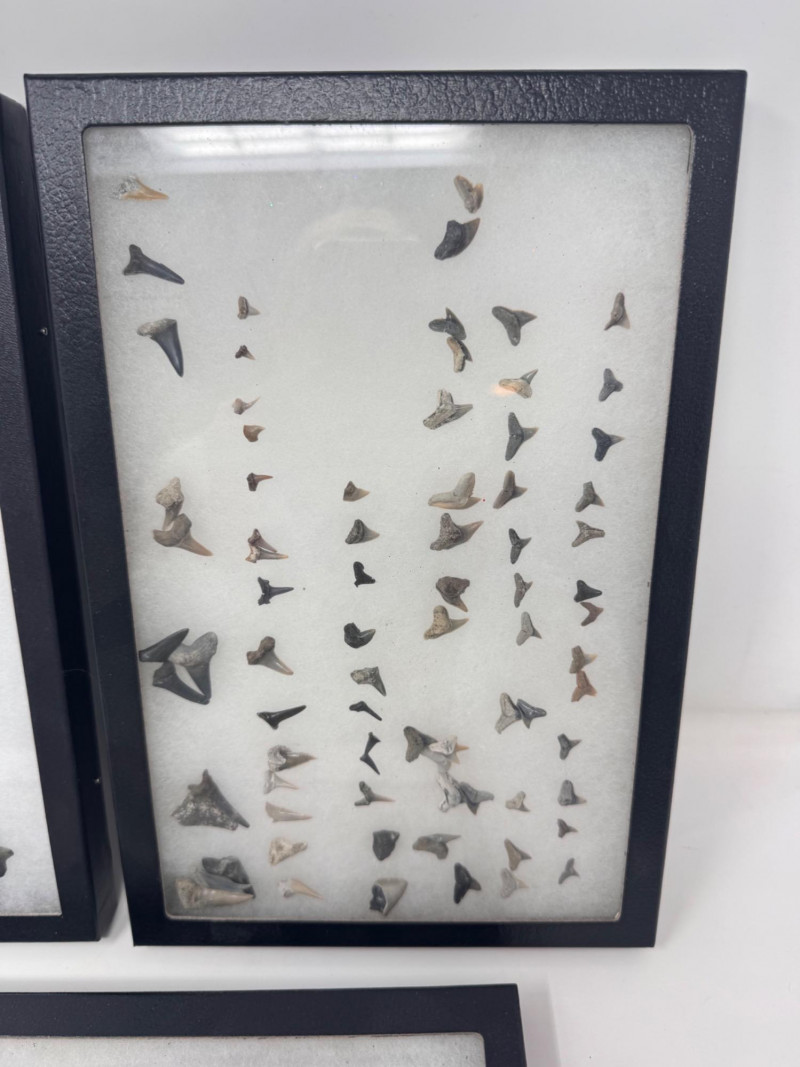 3 Display Cases of Assorted Fossil Shark Teeth.
