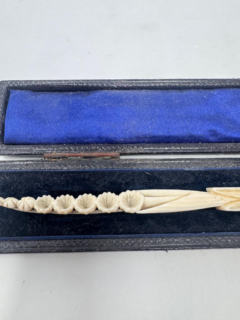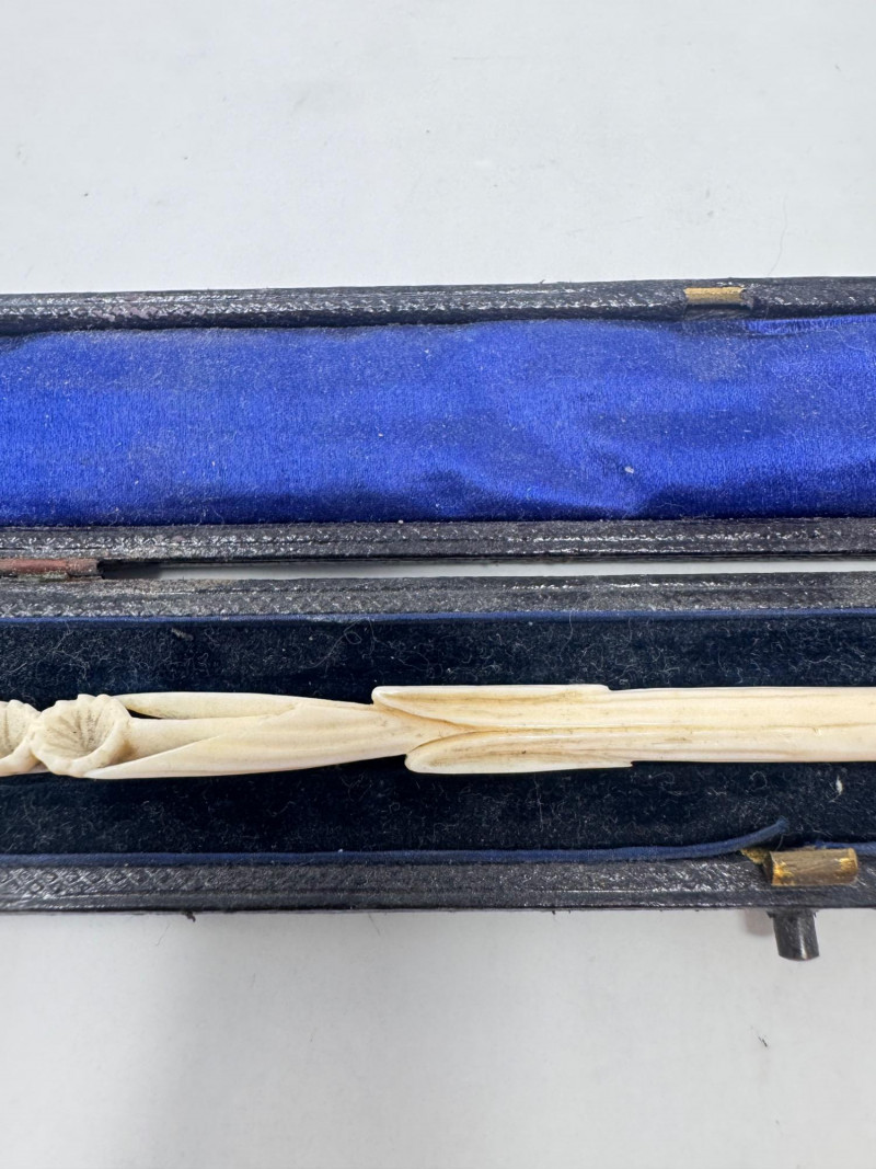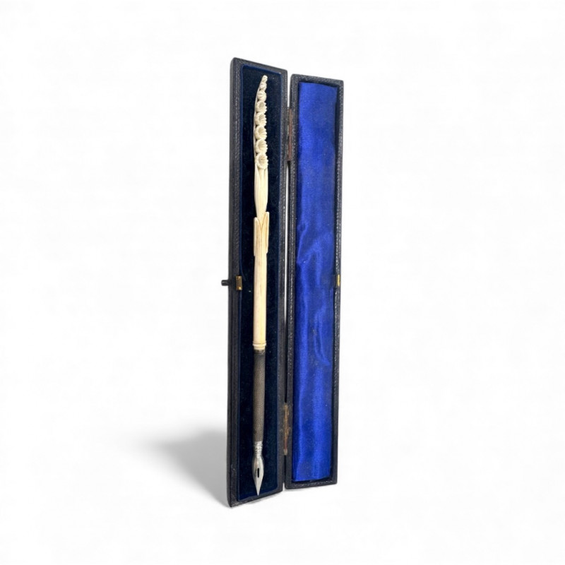 Lot # 13 - Antique Carved Ivory & Silver Dip Pen w/ Case c.1880, London Purchase