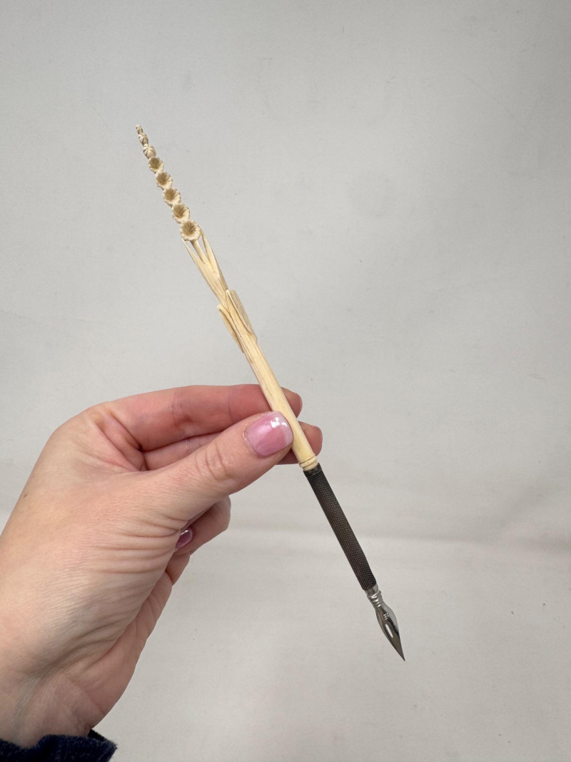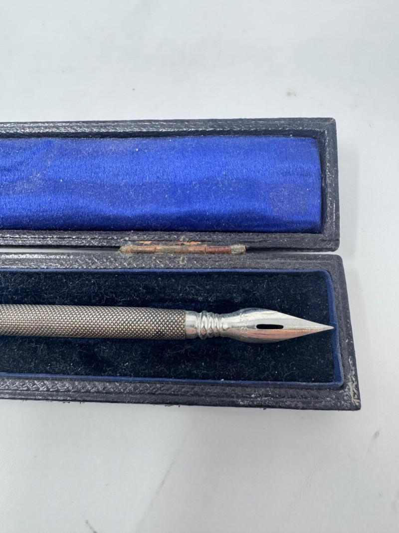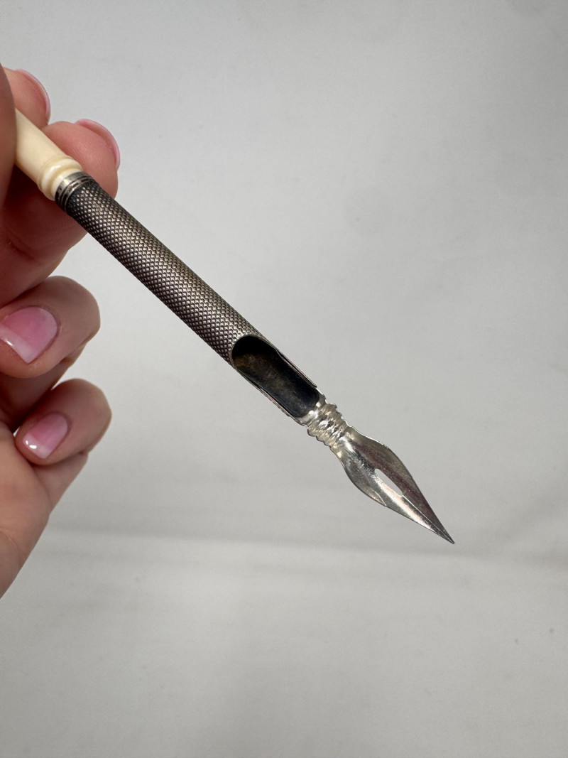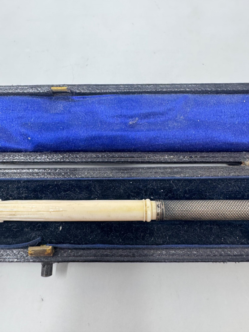 Antique Carved Ivory & Silver Dip Pen w/ Case c.1880, London Purchase.