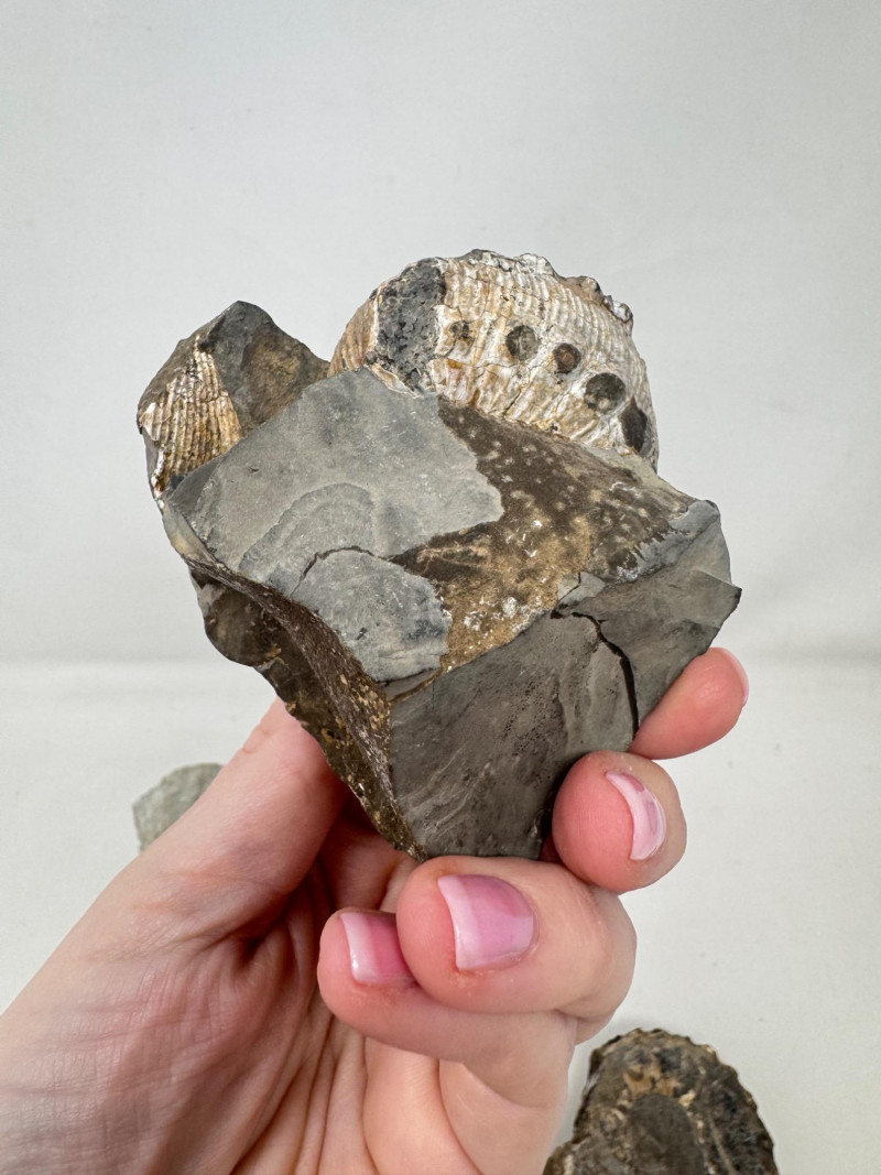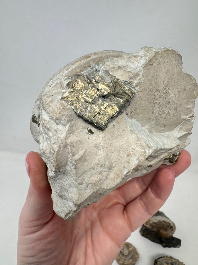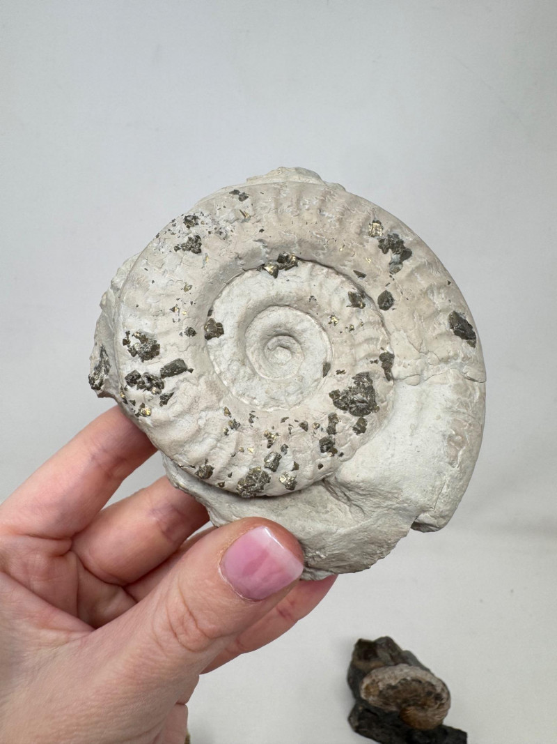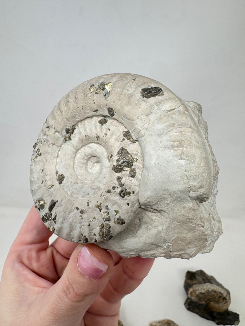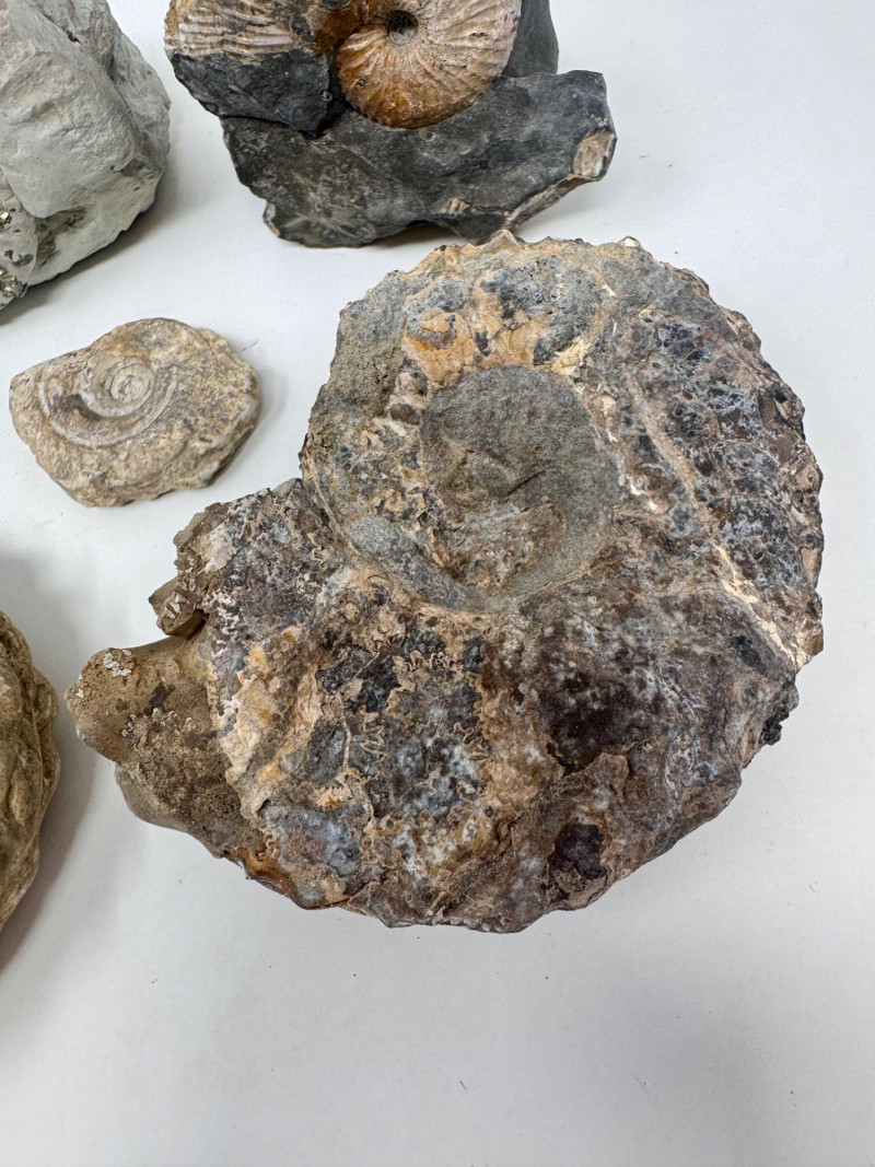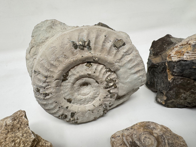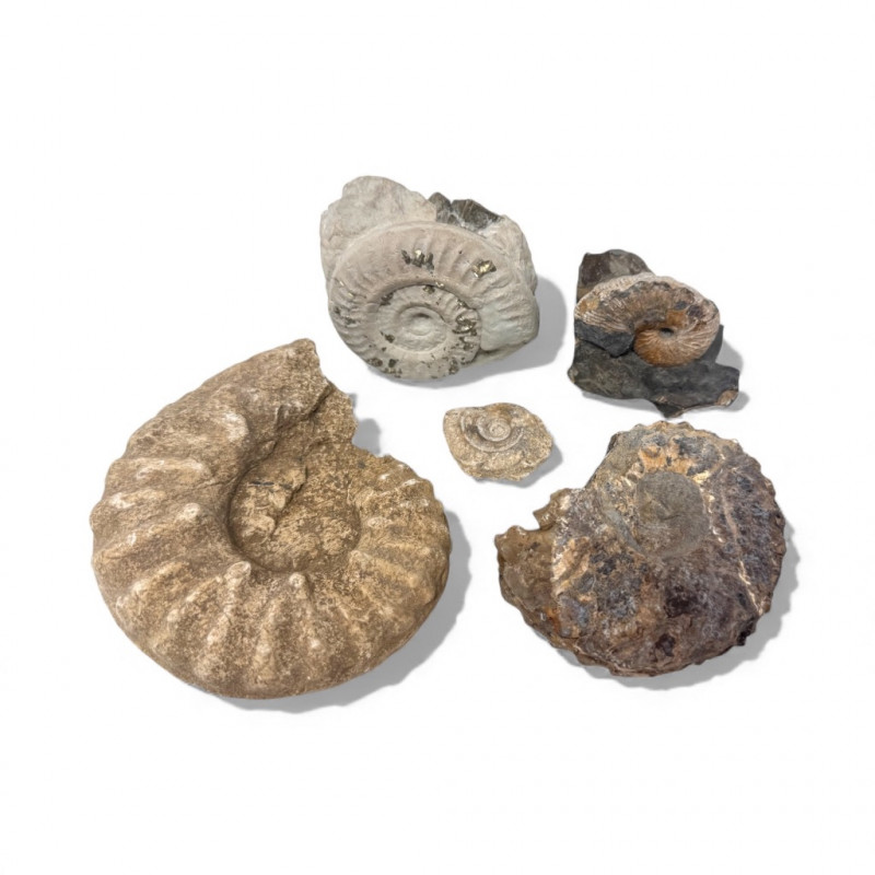Group of 5 Ammonite Fossils – Pyrite Inclusions, Jurassic Period. • Lot of five natural ammonite fossils