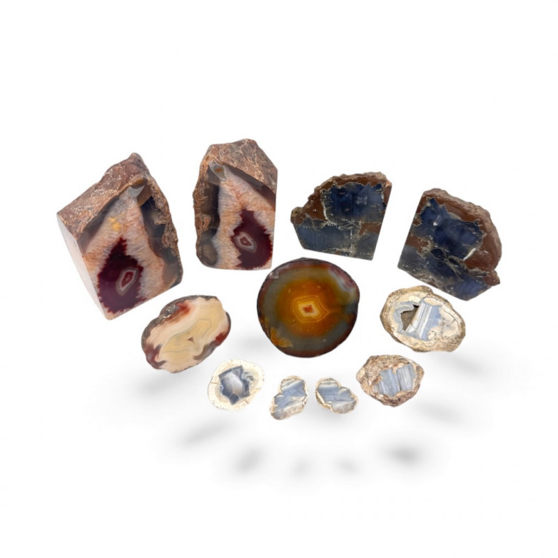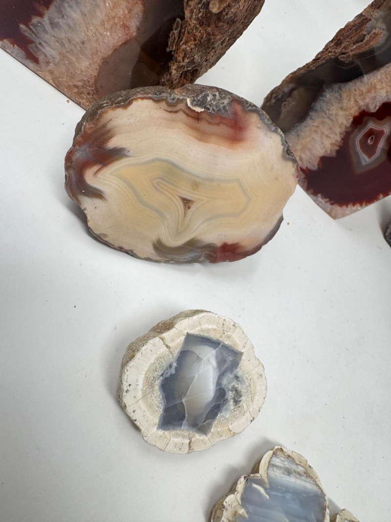 Large Agate Bookend Pair & Mixed Agate Slices Collection.