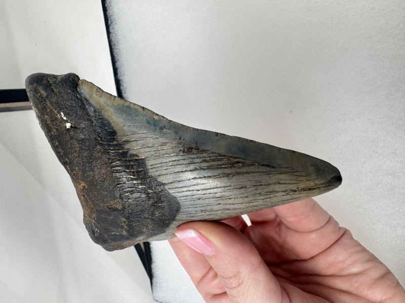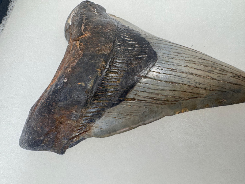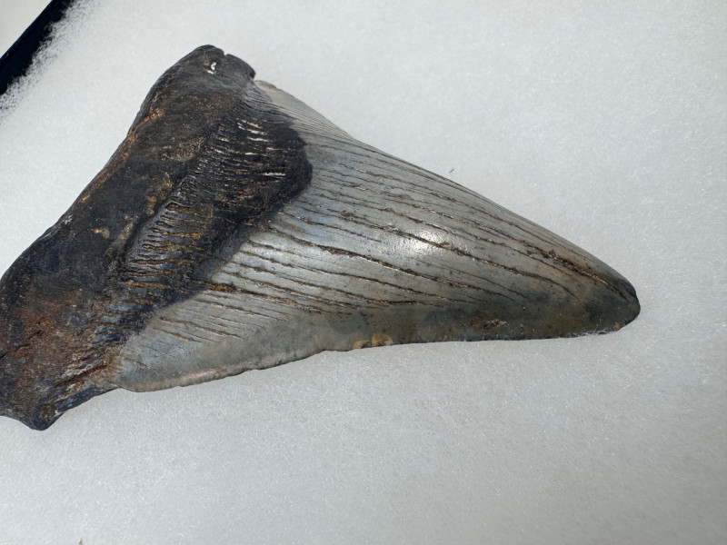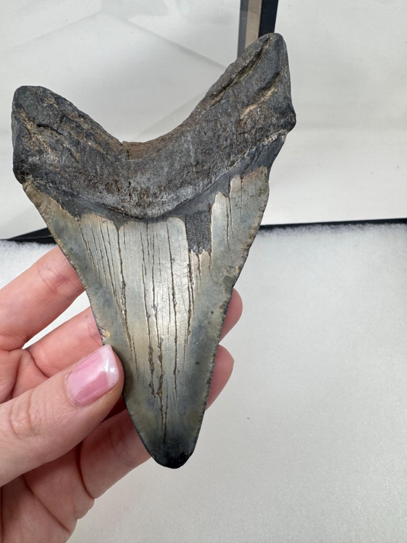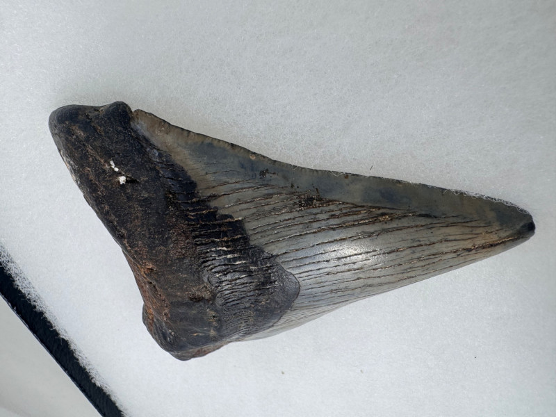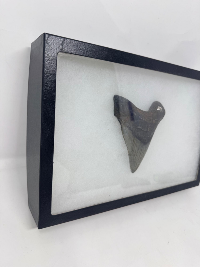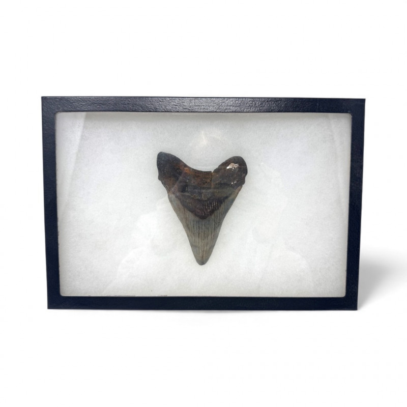 Large Megalodon Shark Tooth in Glass Front Display Case - Set 1.