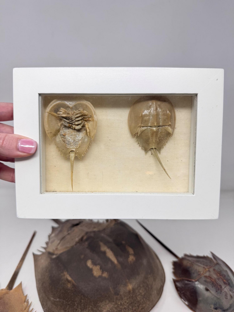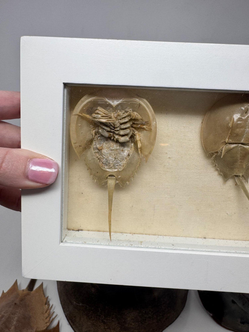 • Includes an additional framed display with two small crabs (dorsal + ventral views)