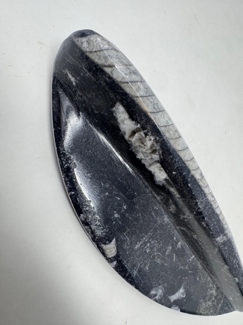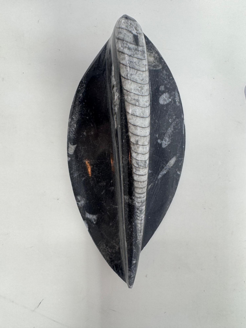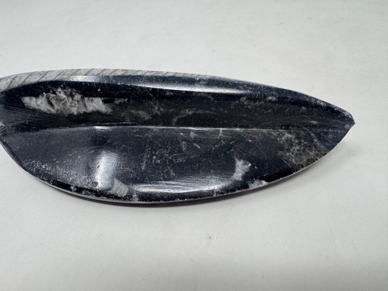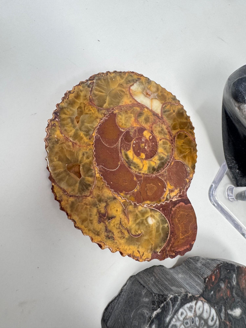 Lot # 28 - Assorted Fossil Decor Lot – Ammonite Slices & Orthoceras Carving +