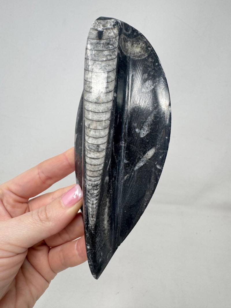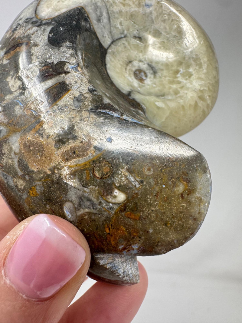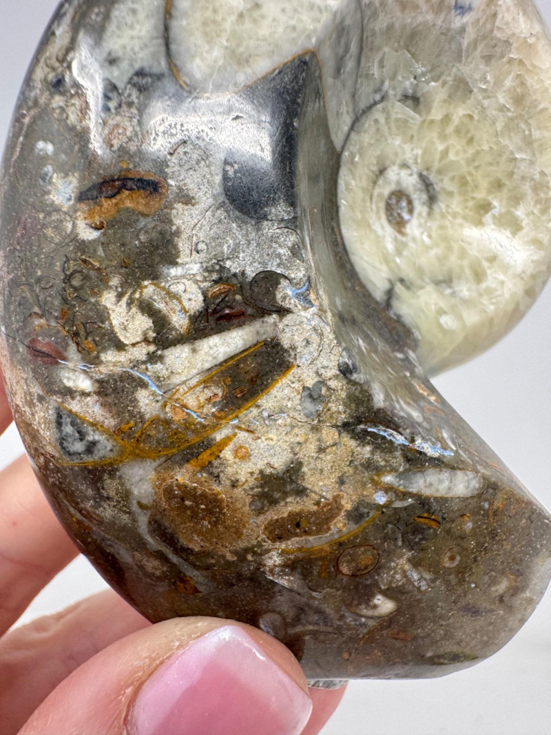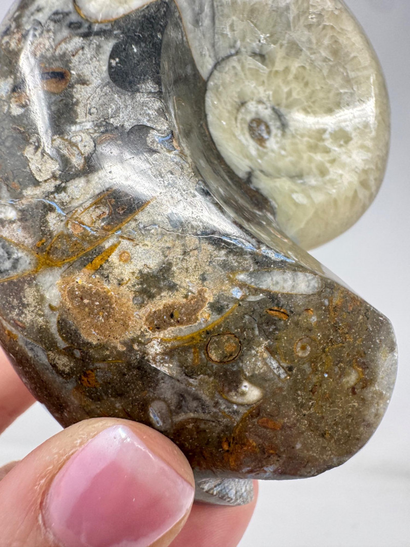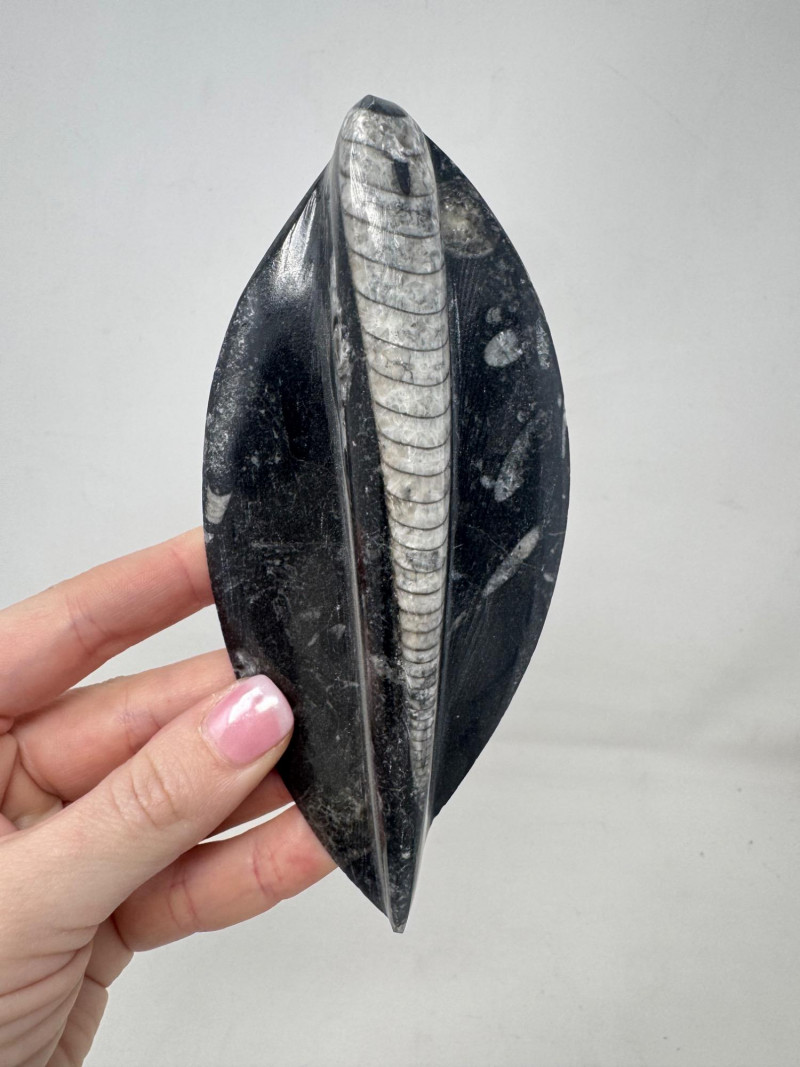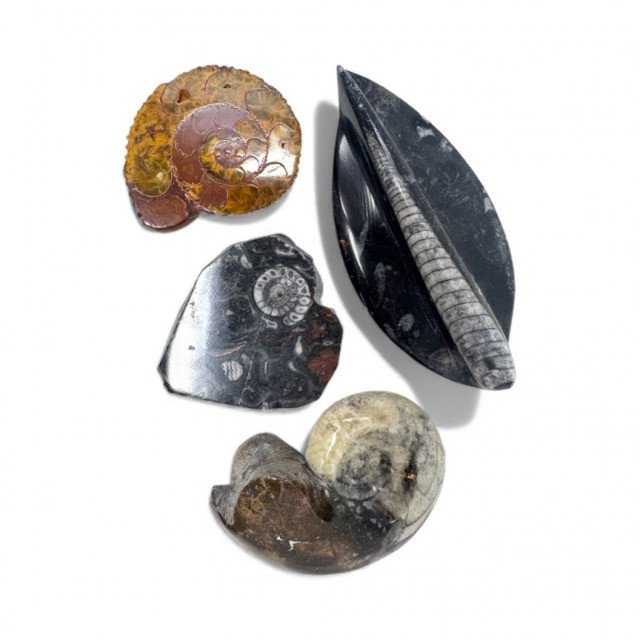 Assorted Fossil Decor Lot – Ammonite Slices & Orthoceras Carving +