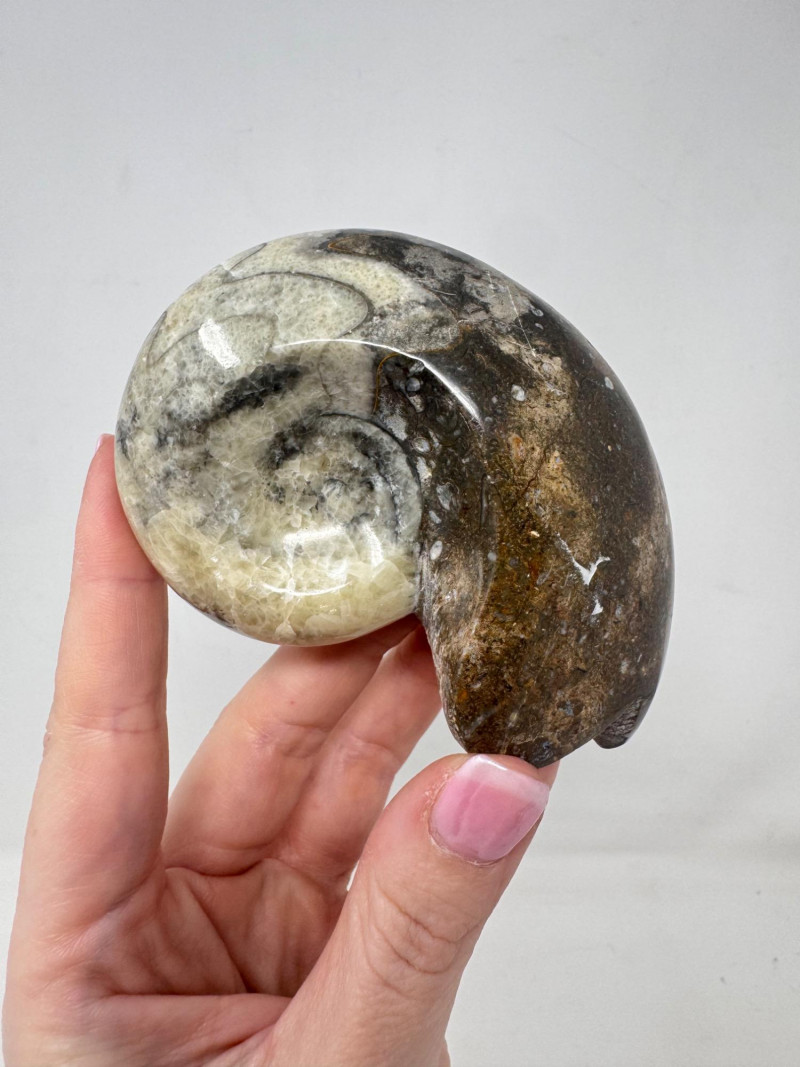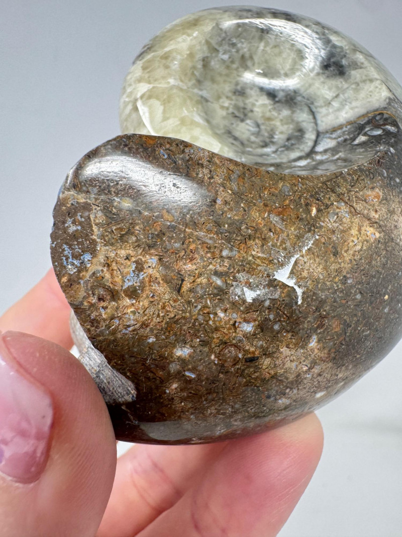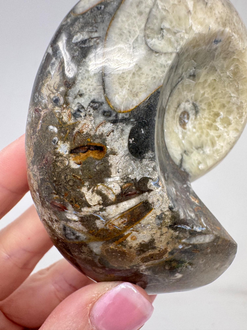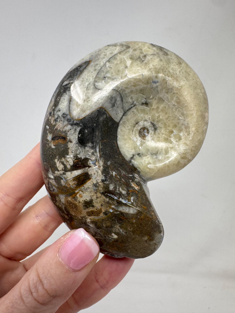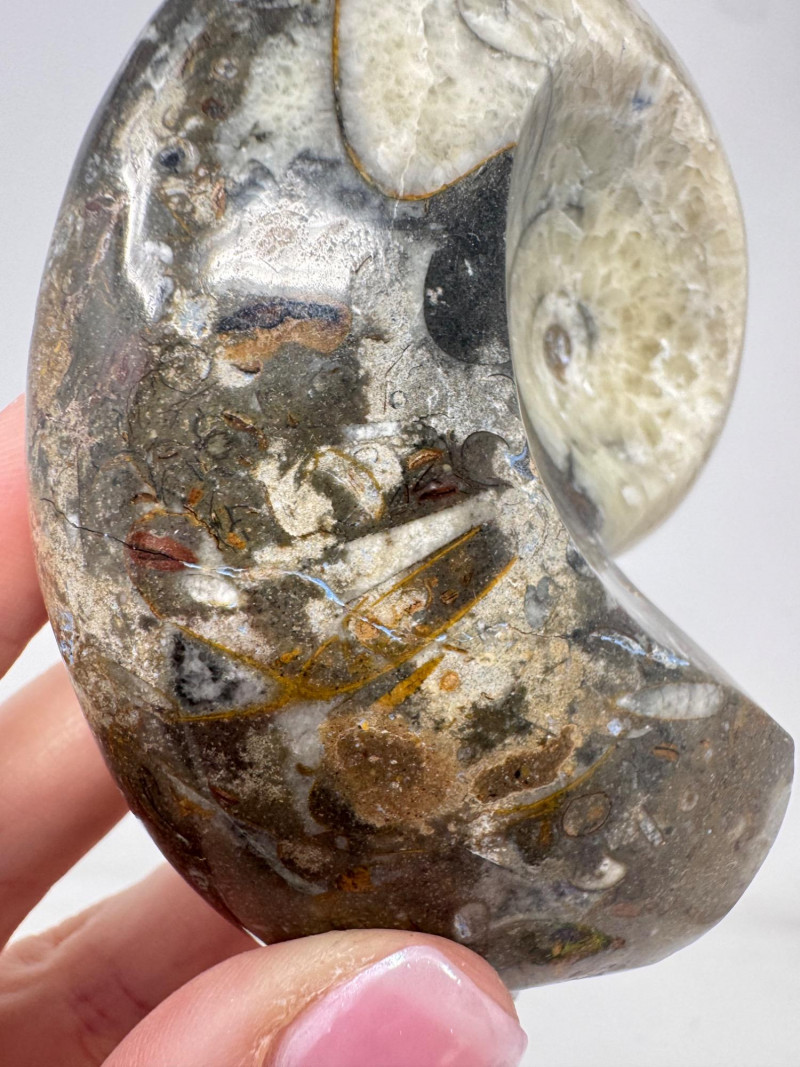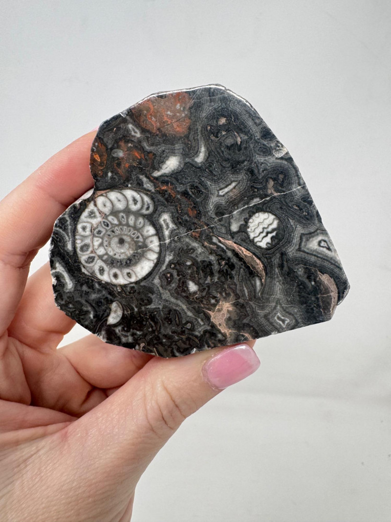 Assorted Fossil Decor Lot – Ammonite Slices & Orthoceras Carving +