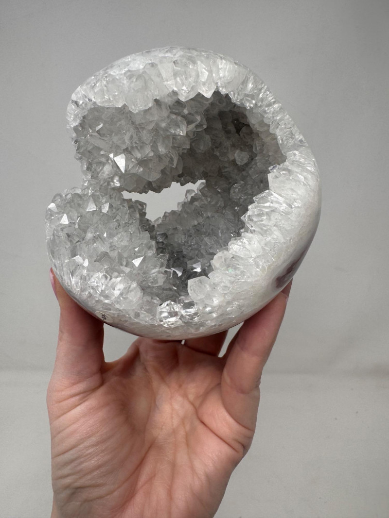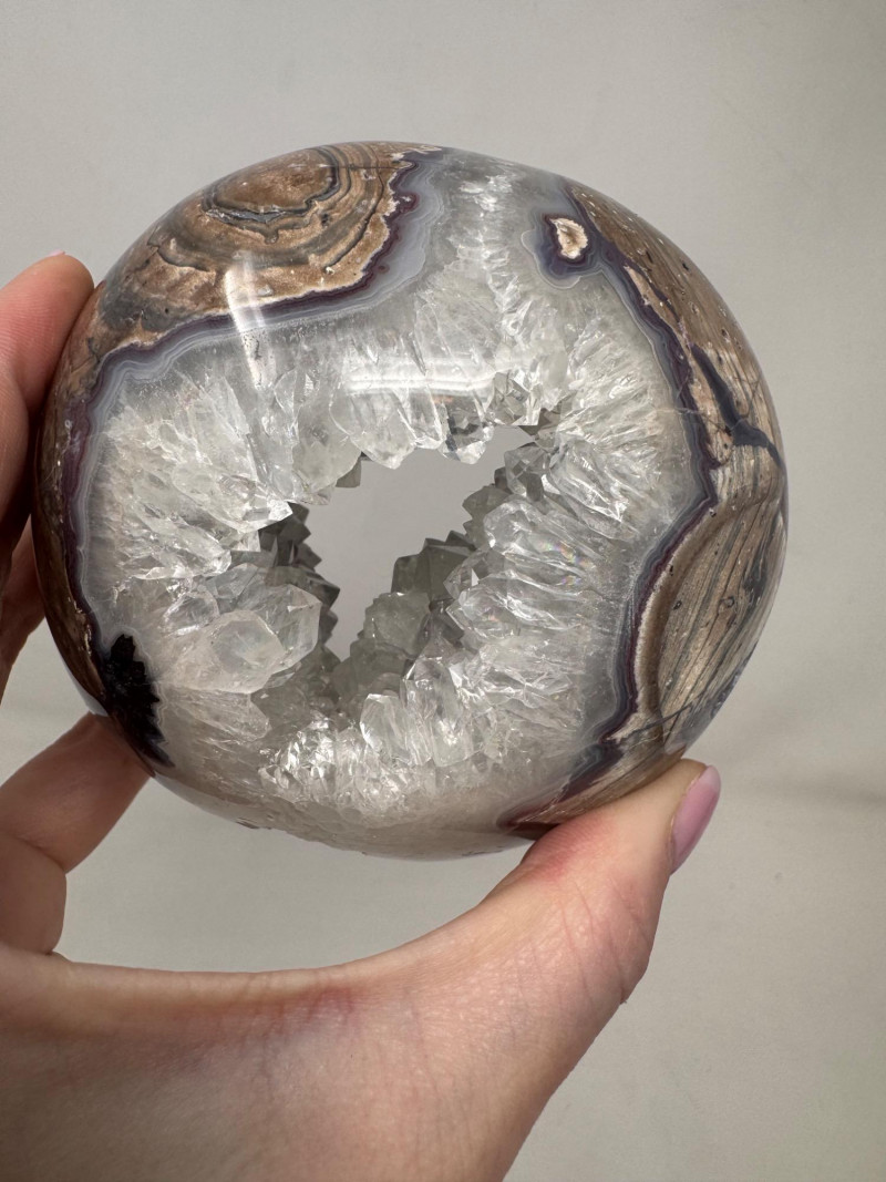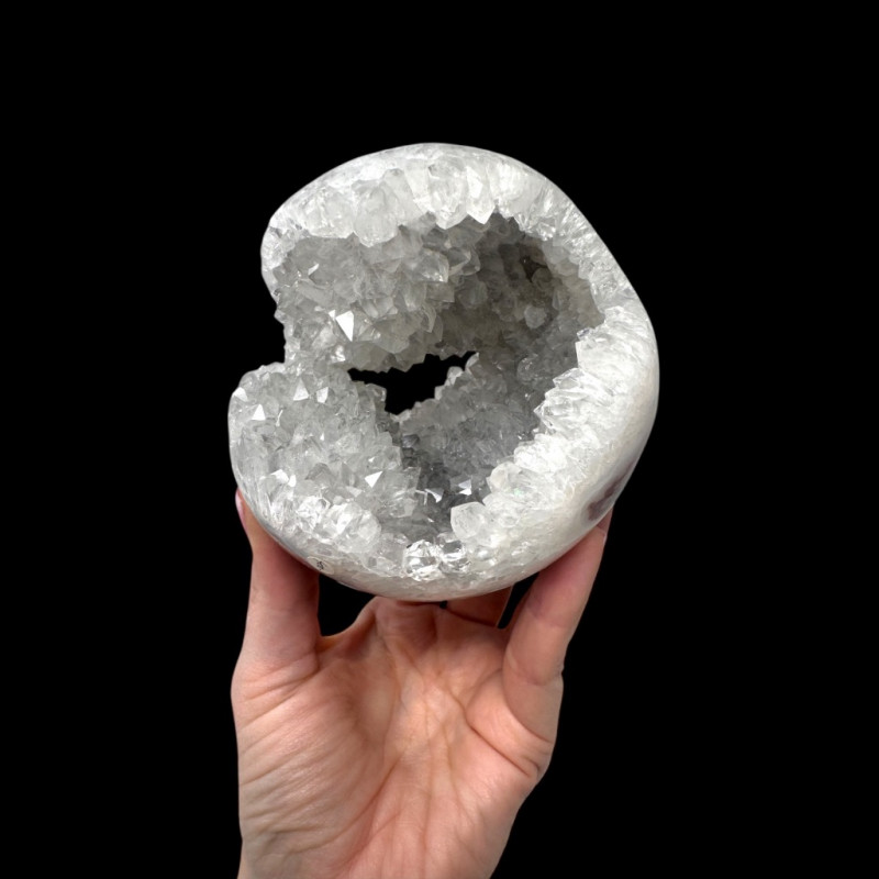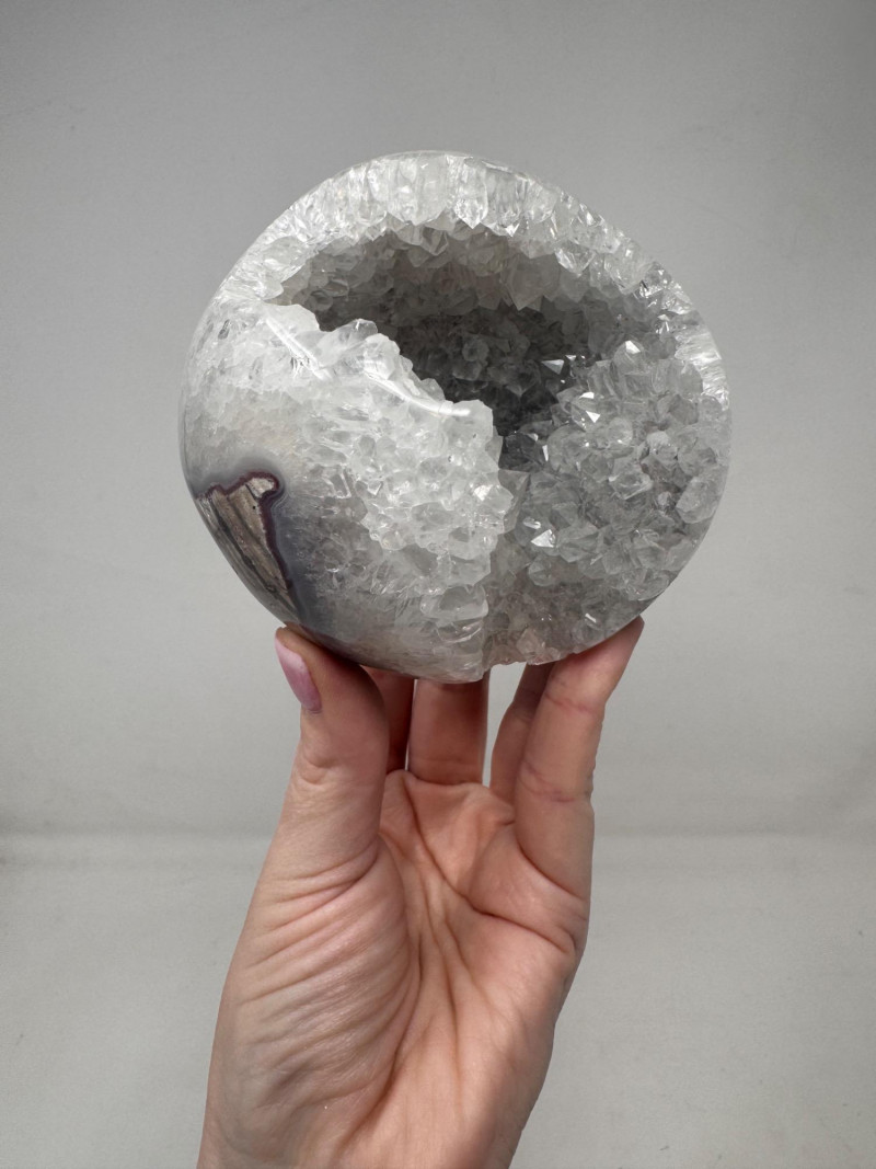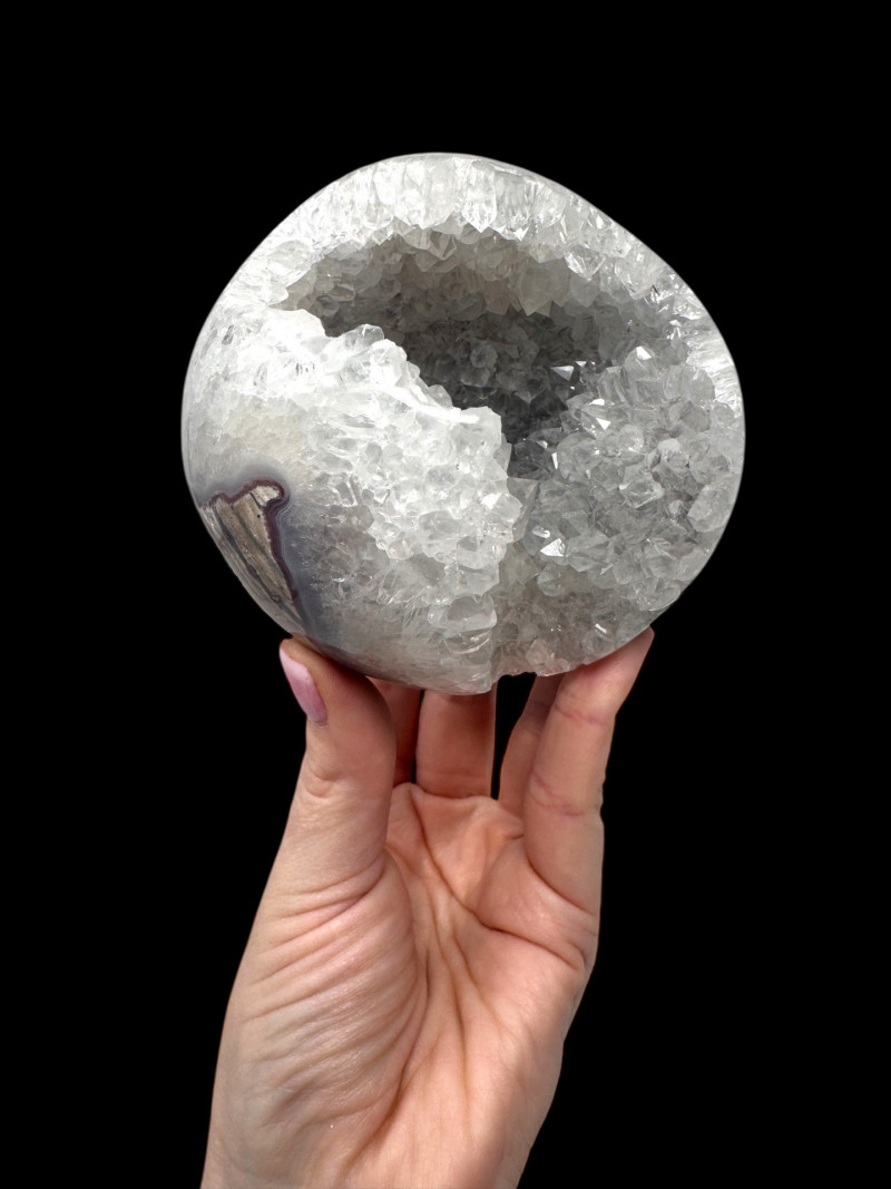Large Quartz Geode Sphere Carving – Sparkling Crystal Display.