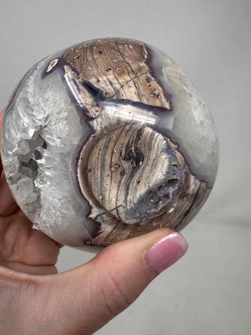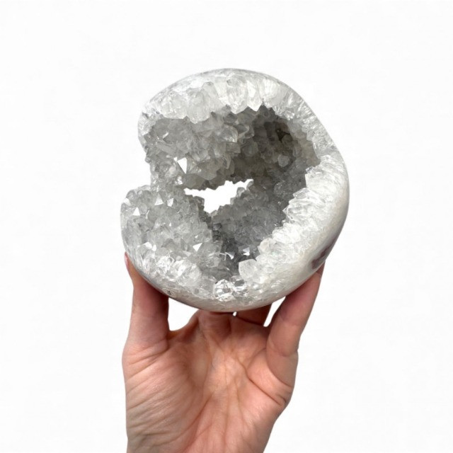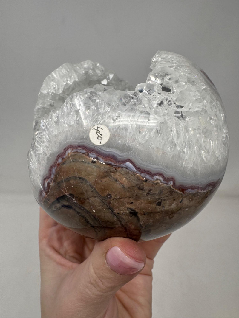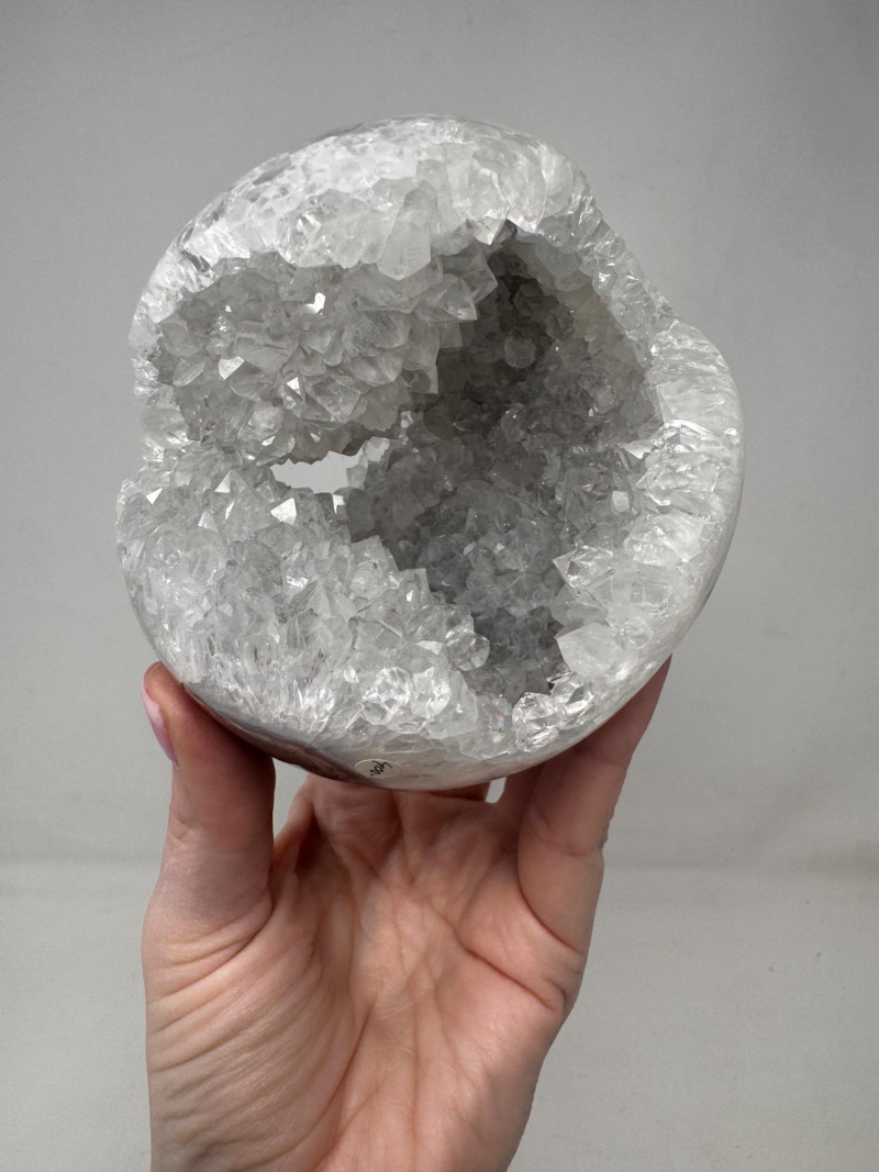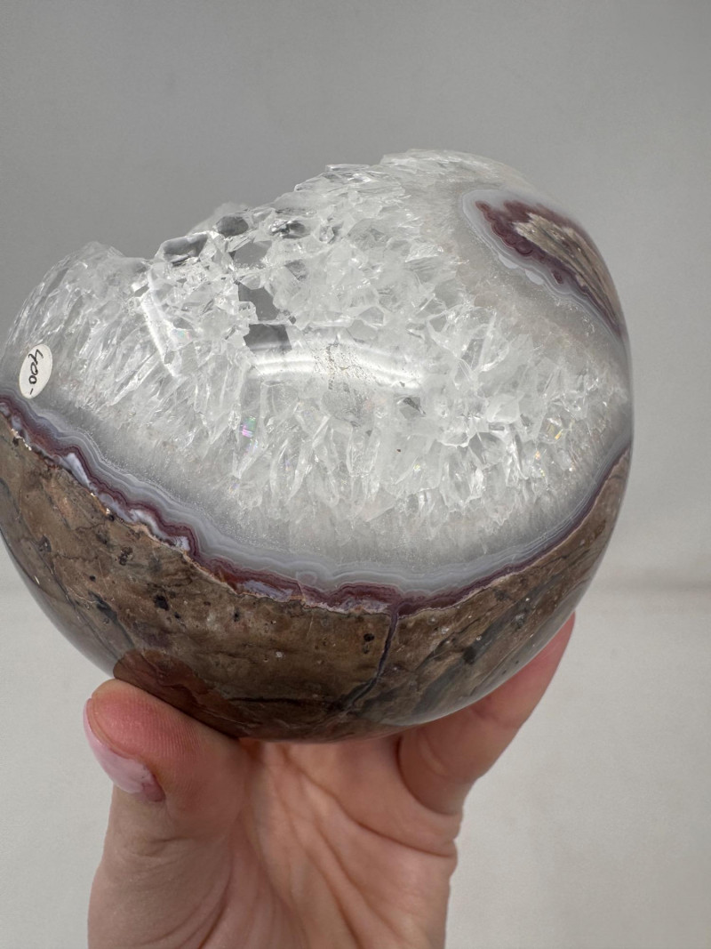 Large Quartz Geode Sphere Carving – Sparkling Crystal Display.