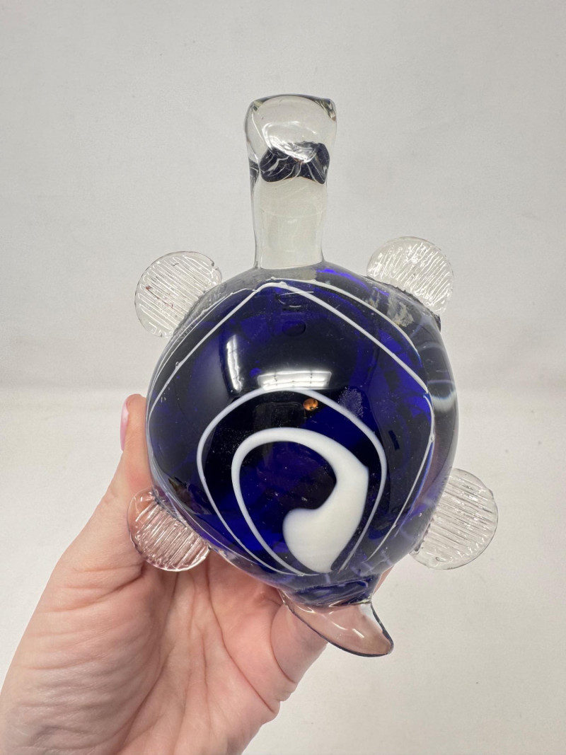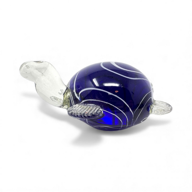 Blown Glass Turtle Paperweight – Cobalt Blue Murano-Style.