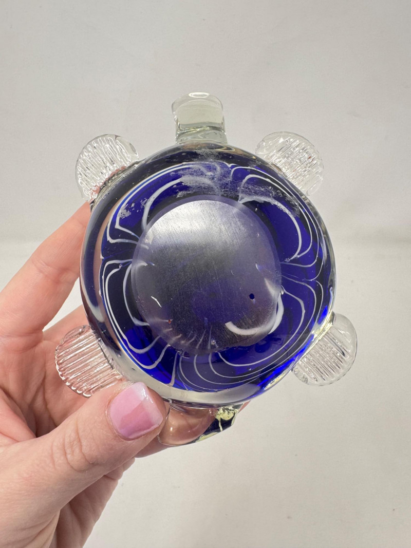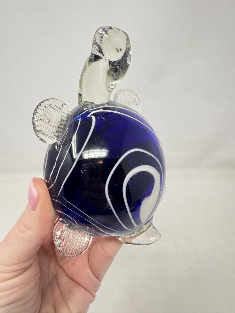 Lot # 35 - Blown Glass Turtle Paperweight – Cobalt Blue Murano-Style