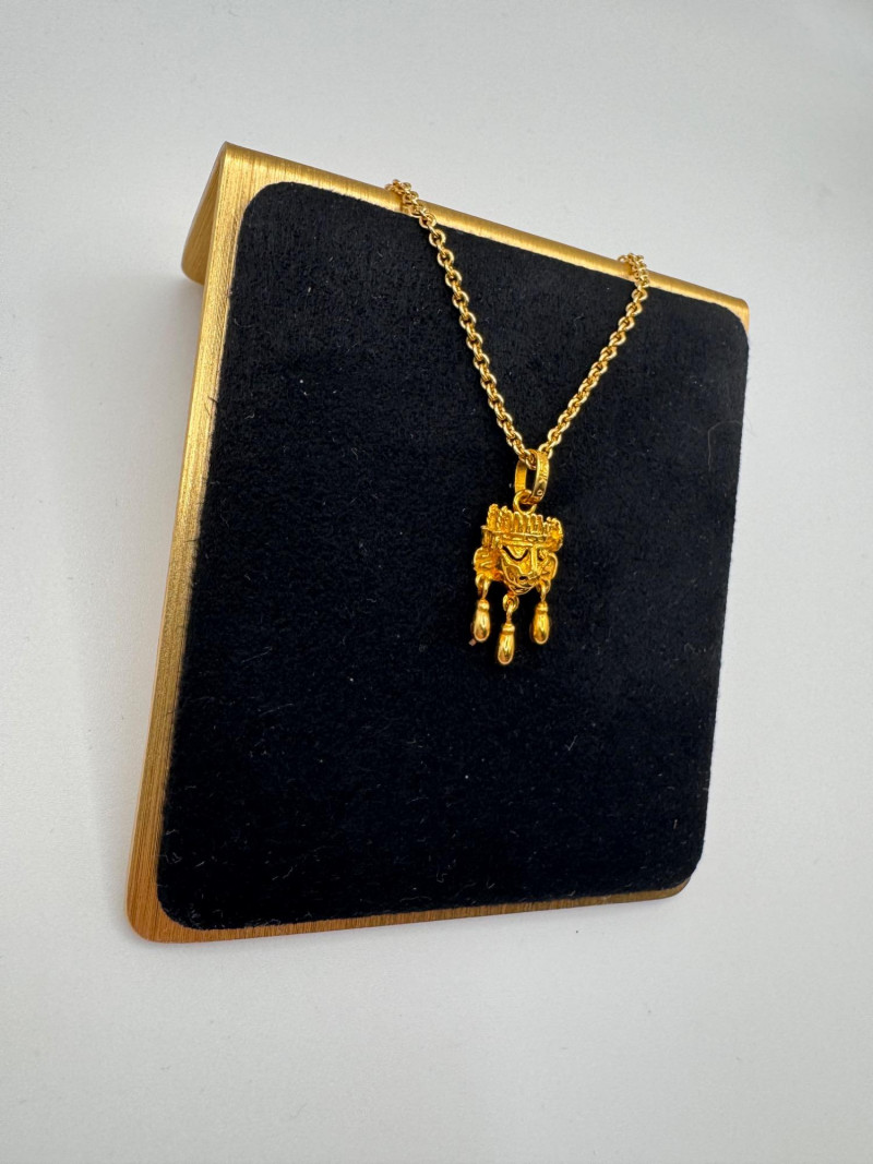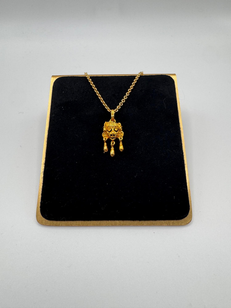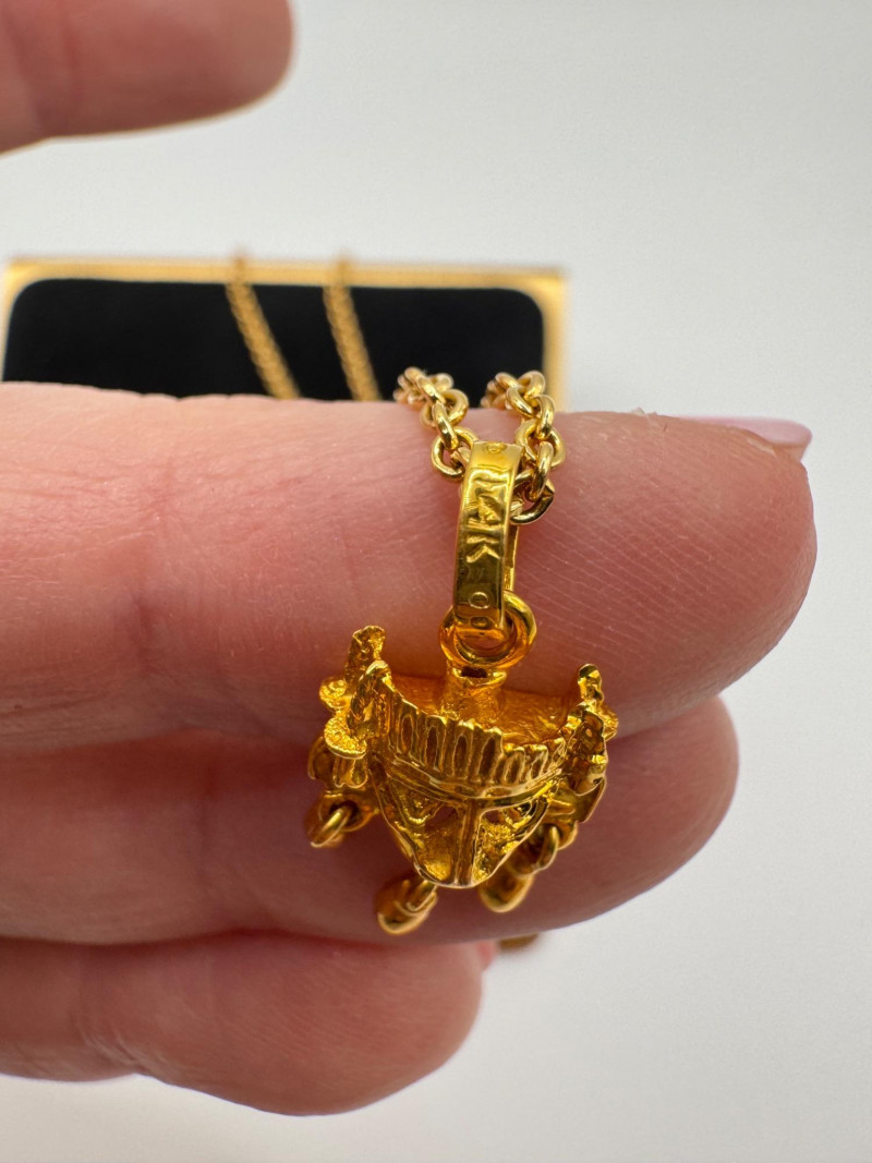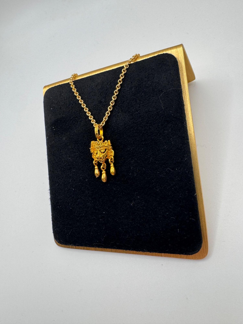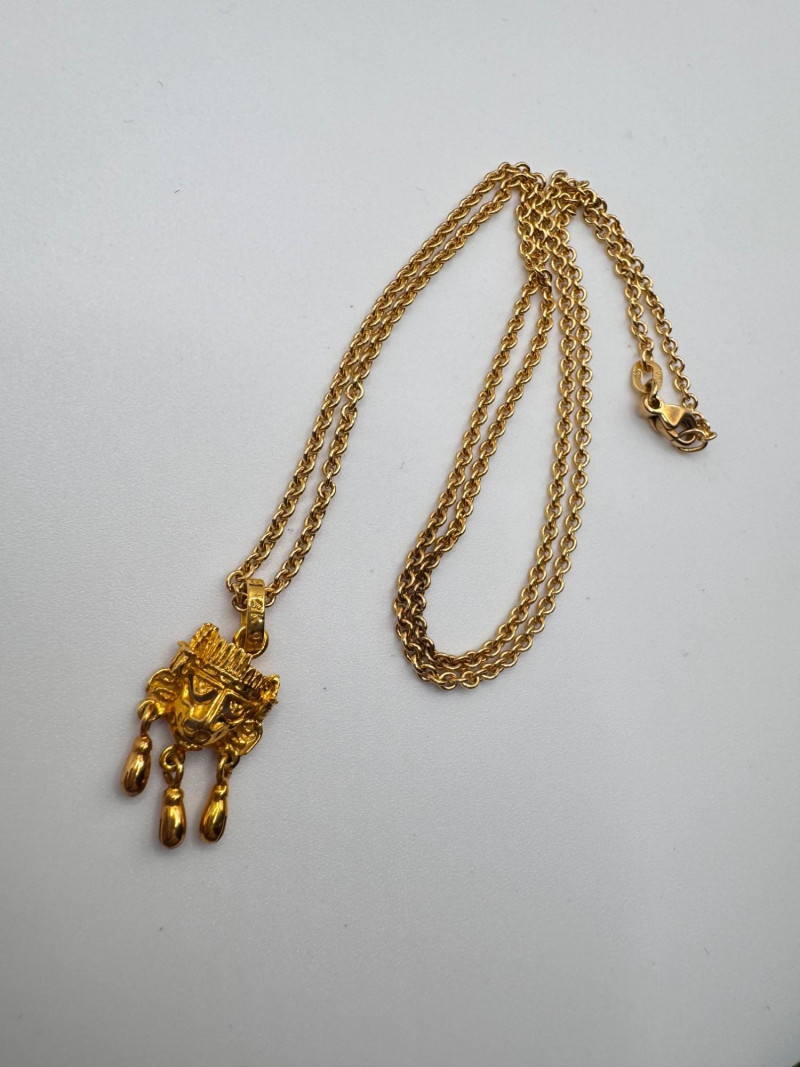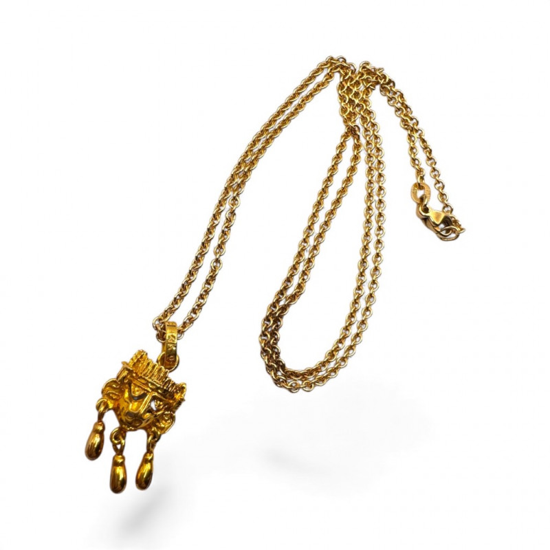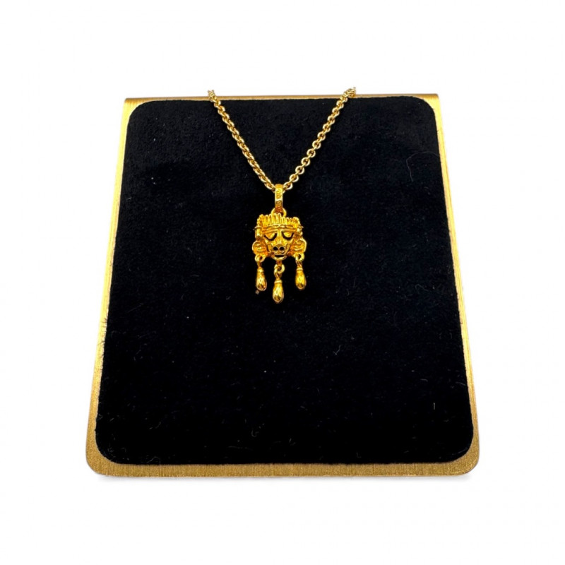 14K Mayan Face Mask Pendant Necklace – 18” Chain, 6.77g.