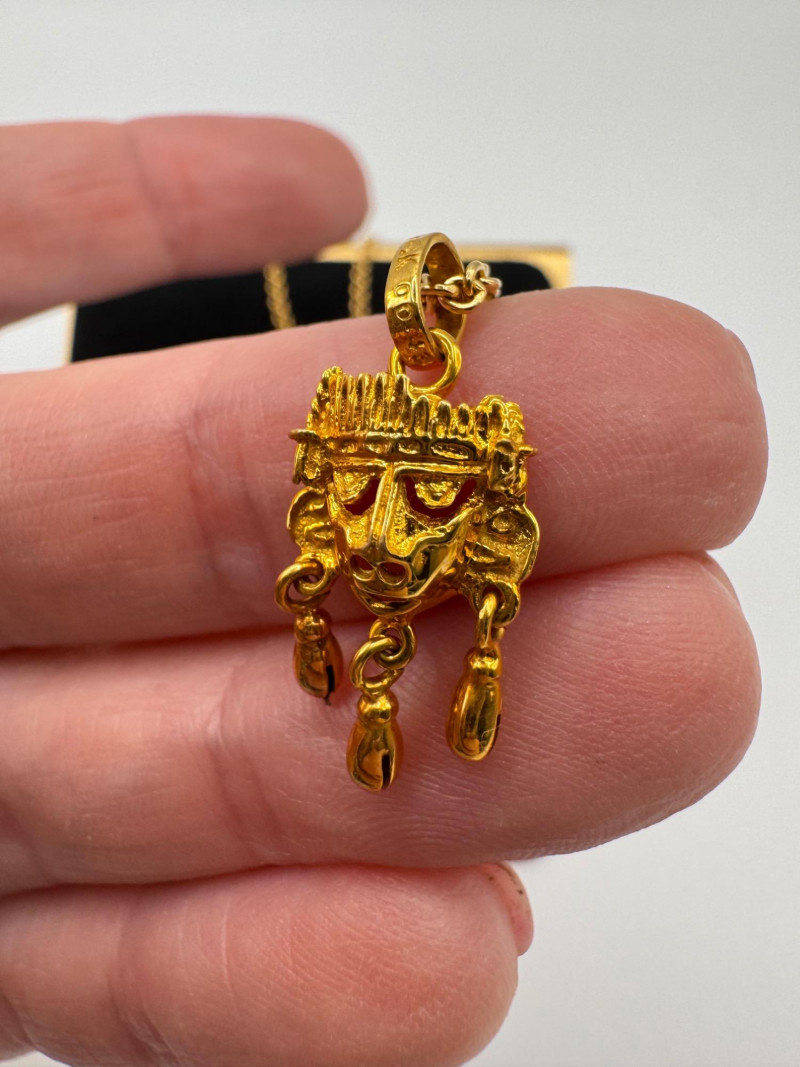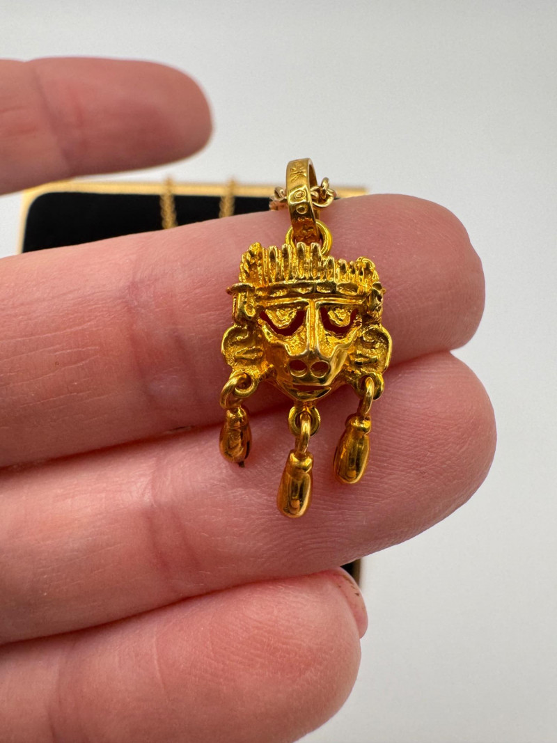 Lot # 40 - 14K Mayan Face Mask Pendant Necklace – 18” Chain, 6.77g