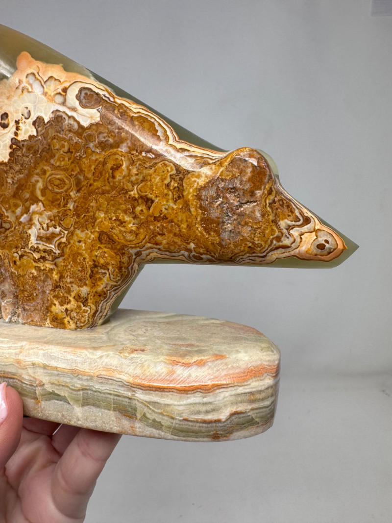 Hand-Carved Onyx Bear Sculpture — Polished Stone Art.
