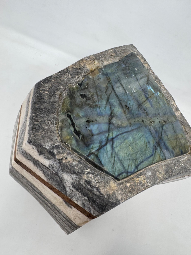 Lot # 64 - Handcrafted Labradorite & Alabaster Hidden Trinket Box – Large