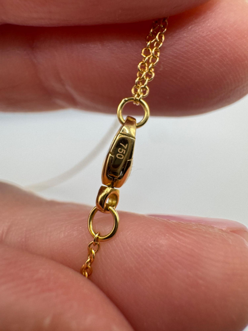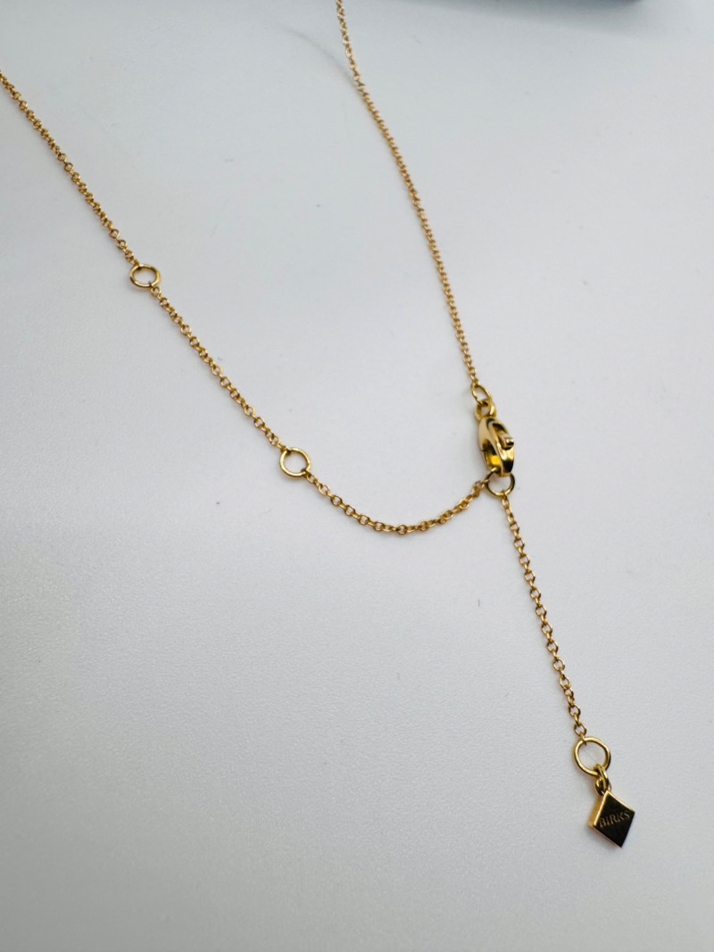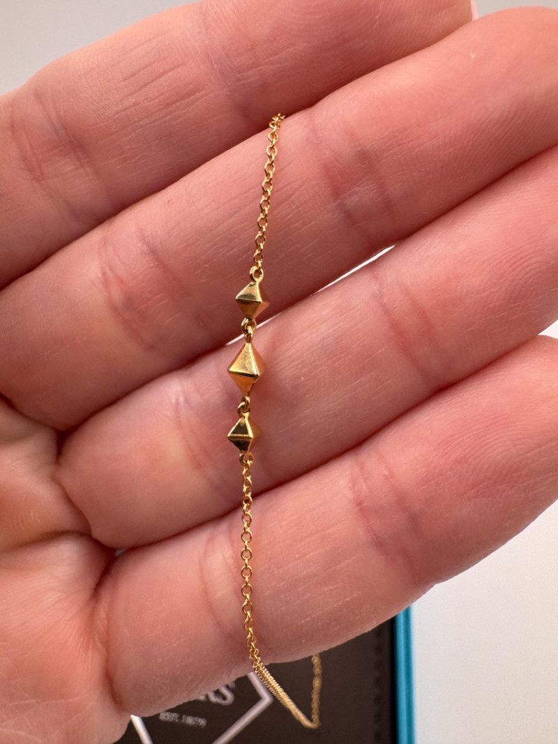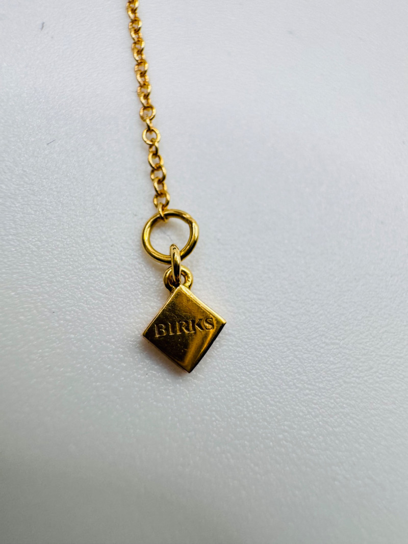 18K Gold Birks Geometric Station Necklace – Adjustable, 2.39g. Brand: Maison Birks Material: 18K yellow gold (marked 750) Design: Geometric pyramid station necklace Length: Adjustable Weight: Approx. 2.39 grams