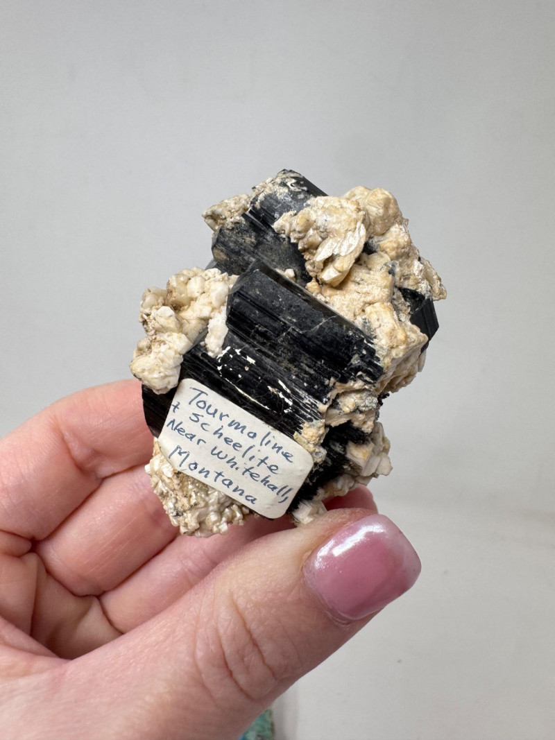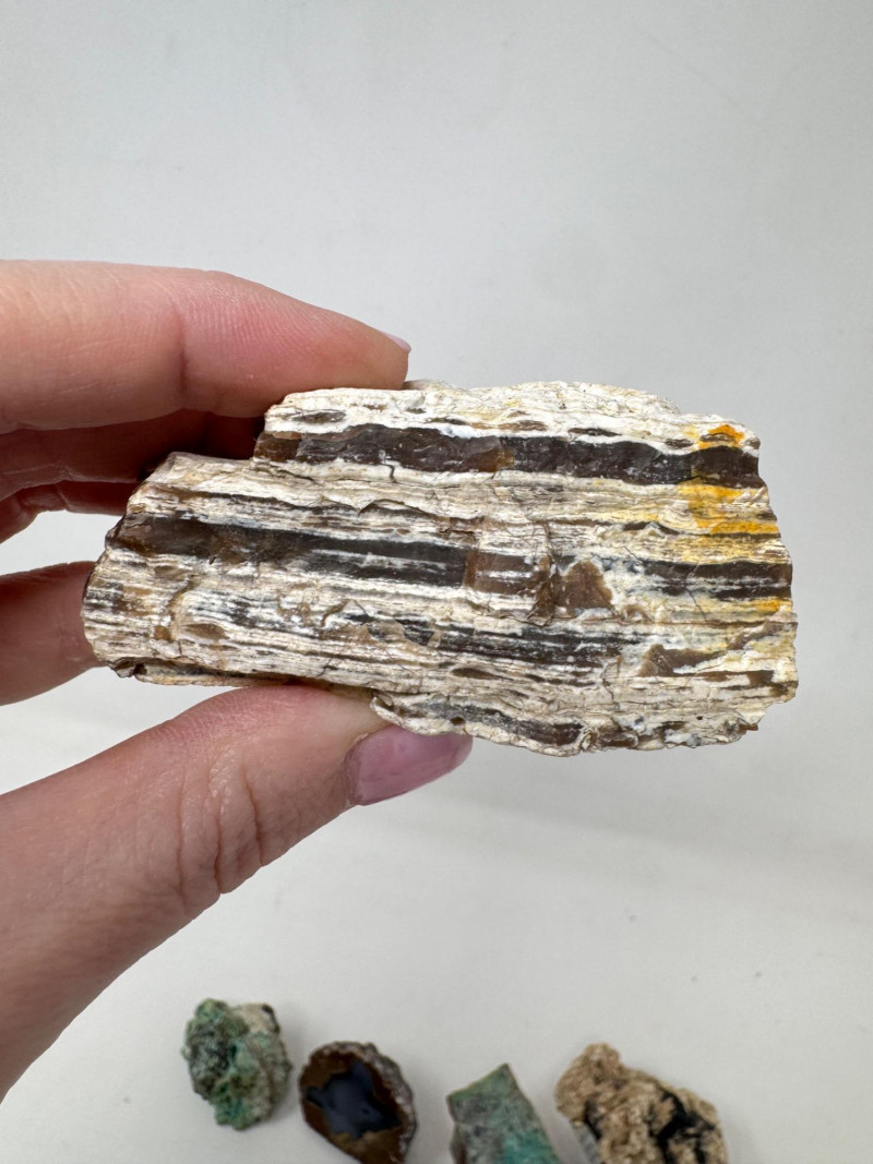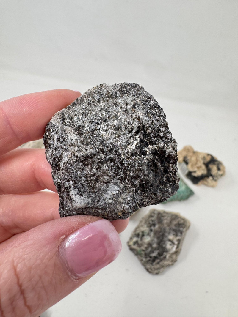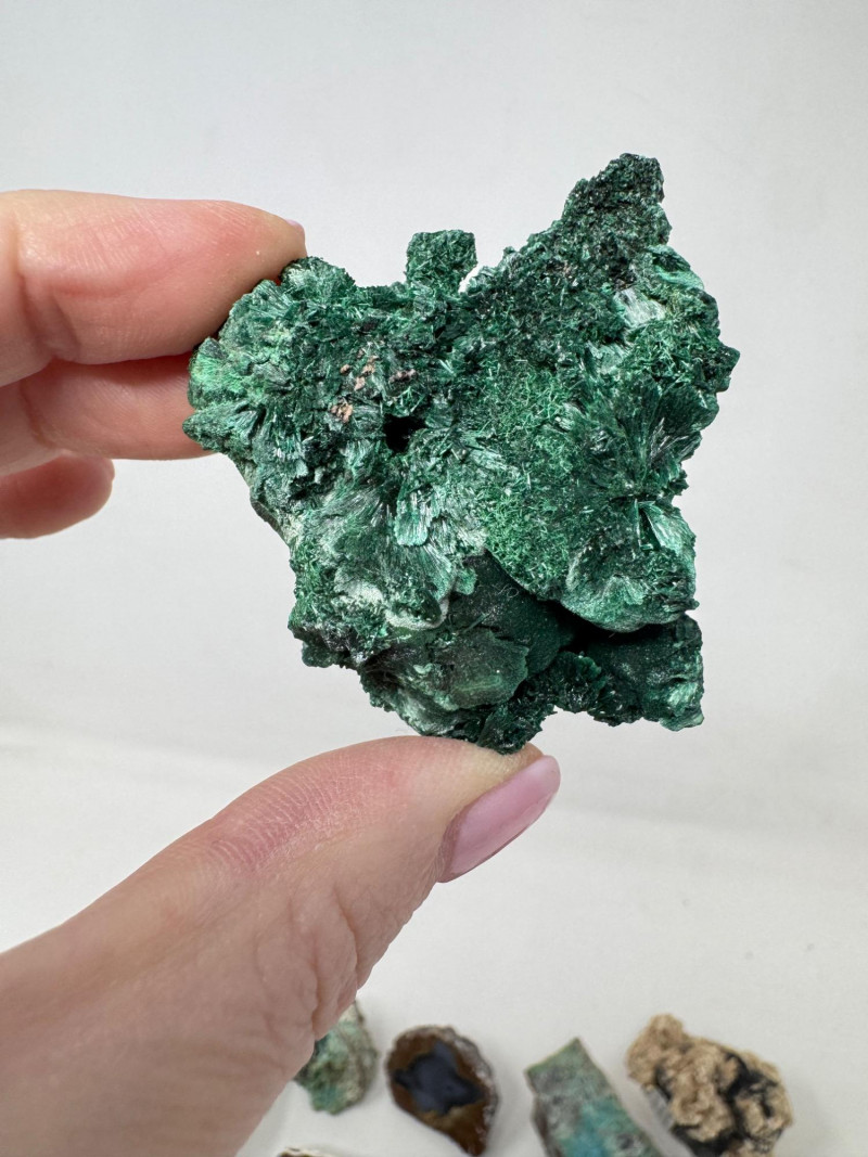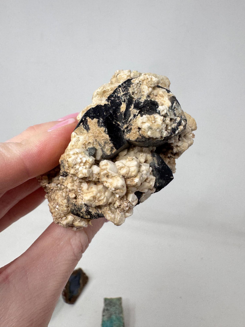 18 Pcs Mixed Mineral Lot – Tourmaline, Amazonite, Apatite, Lapis + Mixed lot of mineral and crystal specimens. Includes identified pieces such as: Amazonite in matrix & loose Apatite (tagged “Yates Otter Lake, Quebec”) Tourmaline & Scheelite (tagged “Near Whitehall, Montana”) Additional visible minerals may include: Tourmaline (pink, green, black) Chrysocolla / copper ore pieces Malachite cluster Agate slice Lepidolite / mica-rich stones Quartz and calcite pieces Blue apatite-type specimen Variety of raw, natural, and matrix specimens.