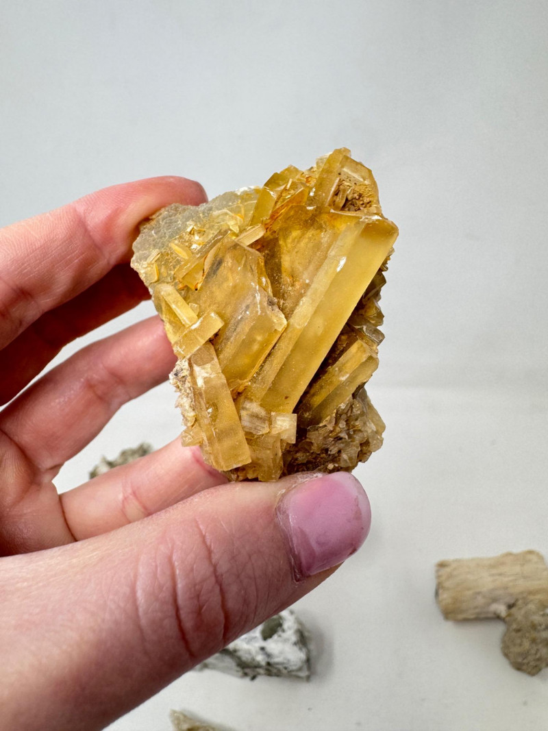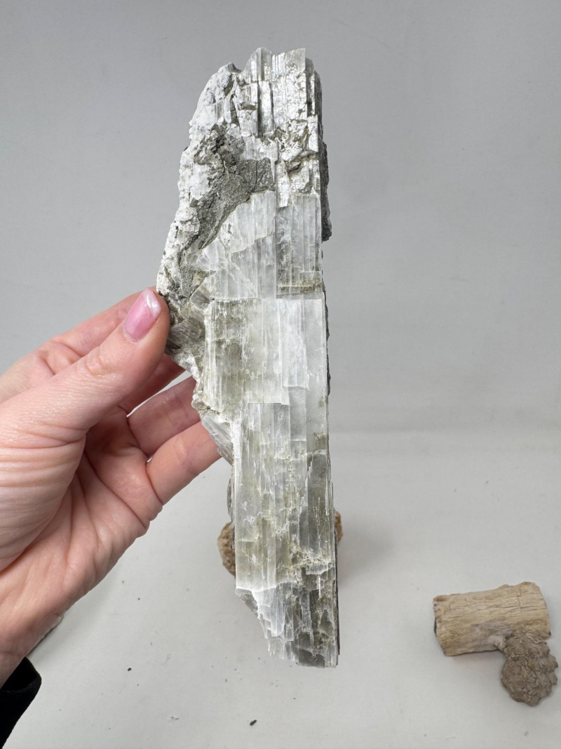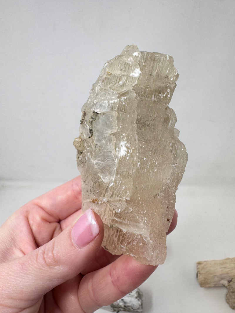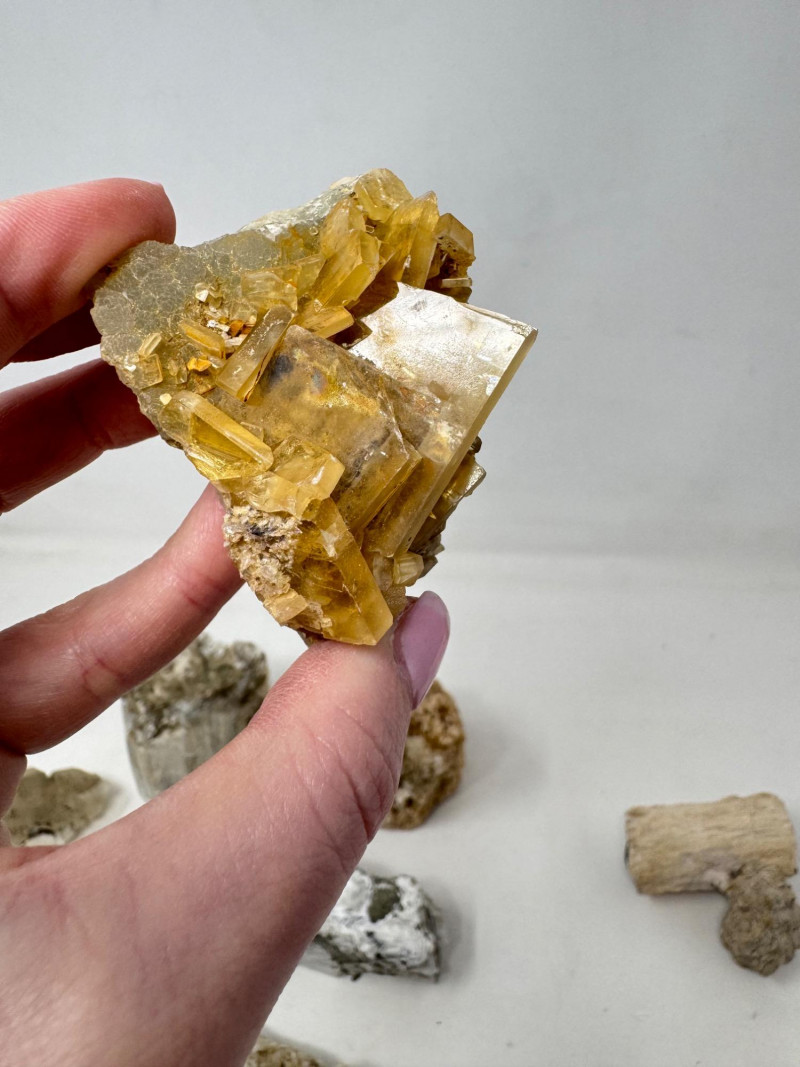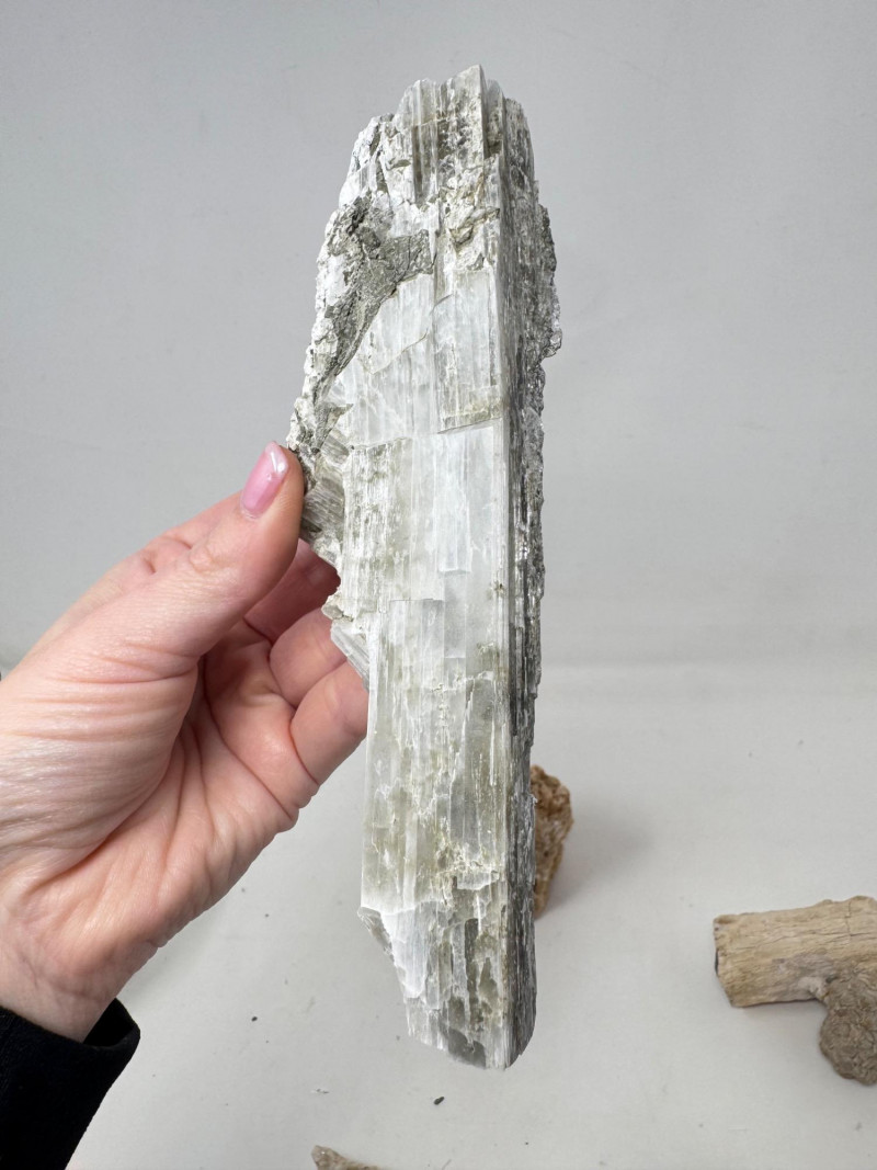 9pcs Mixed Fossil & Mineral Lot – Petrified Wood, Barite, Araucaria + Largest piece approx. 7” long Includes: Araucaria petrified pine cone in branch (Patagonia, Argentina – Jurassic, ~210mya) Barite on fluorite – Rock Candy Mine, Grand Forks, BC Fossilized wood (Czech Republic, with certificate) Metaline Formation fossils (Washington) – includes trilobite material Large clear selenite/gypsum blade specimens Golden barite crystal cluster Additional mixed mineral & fossilized pieces