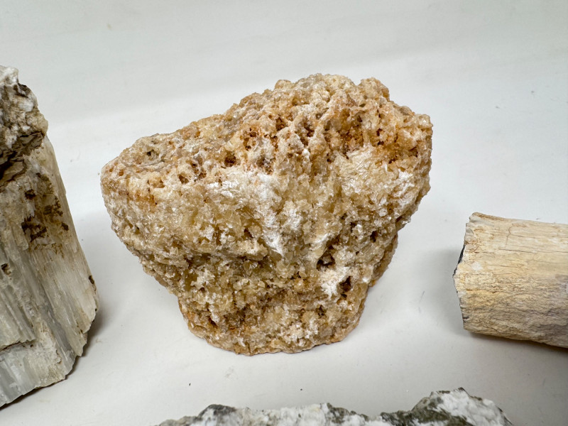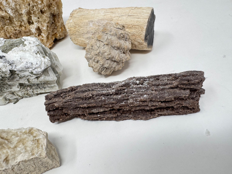 Lot # 85 - 9pcs Mixed Fossil & Mineral Lot – Petrified Wood, Barite, Araucaria +